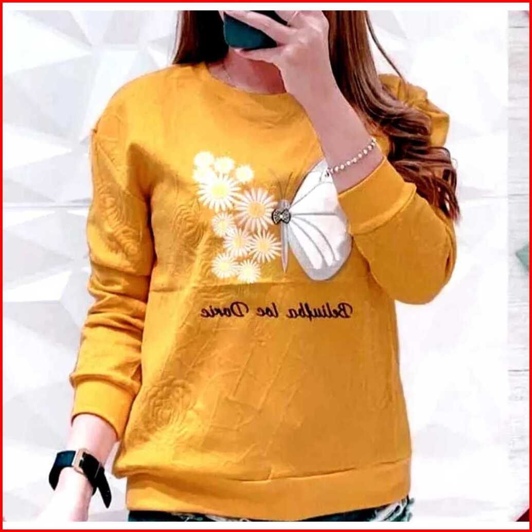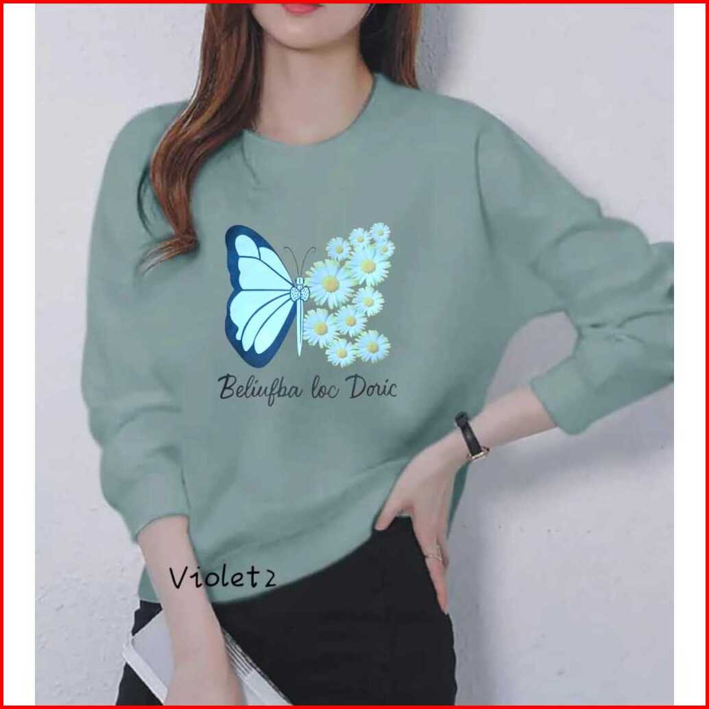 Kaos Atasan Wanita Lengan Panjangdewasa Motif Batterfly Gambar Trendy Cetak Dtf Lengan Panjang
