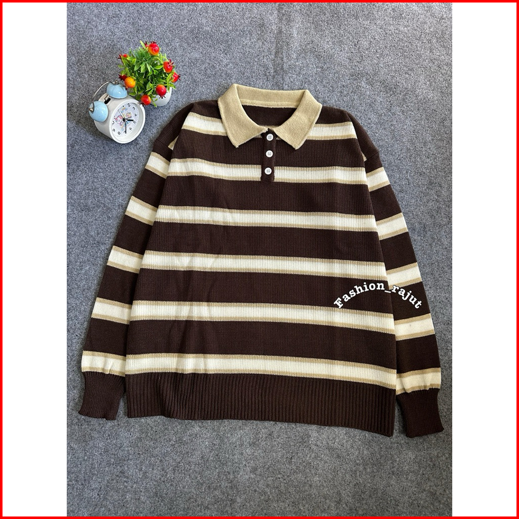 Linetta Polo Knitwear Sweater Oversize Atasan Rajut Wanita