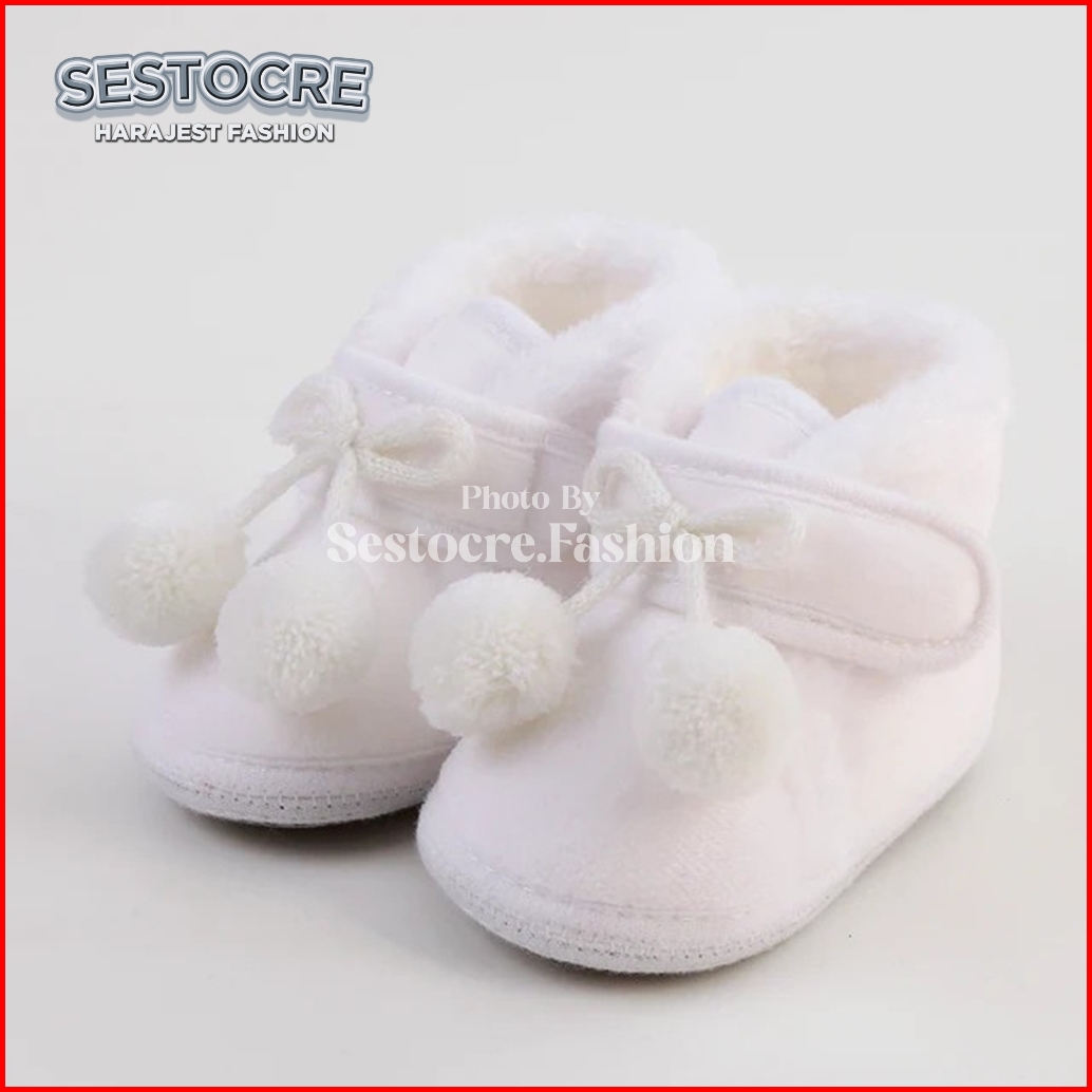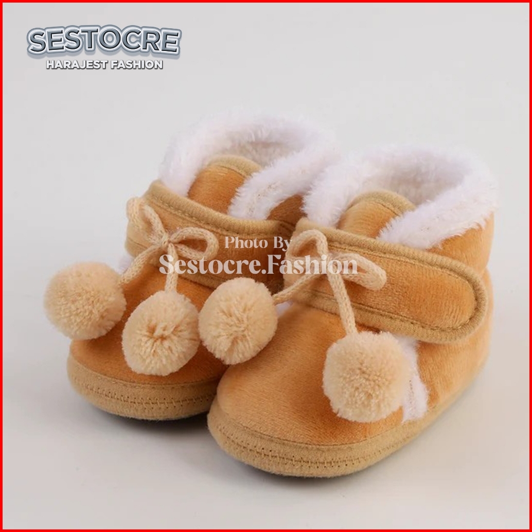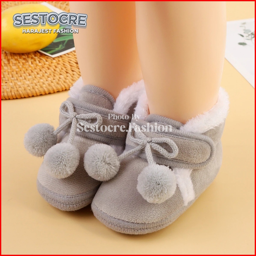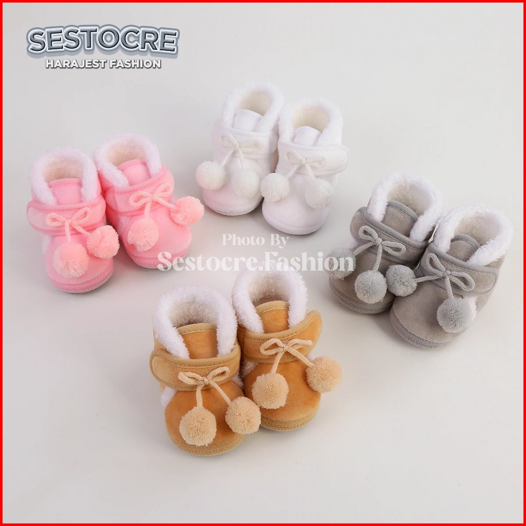 Sepatu Bayi Perempuan Boots Hairball Cute 0 3 6 9 12 Bulan Baby Shoes Prewalker New Born Nyaman Softsole Anti Slip Desig