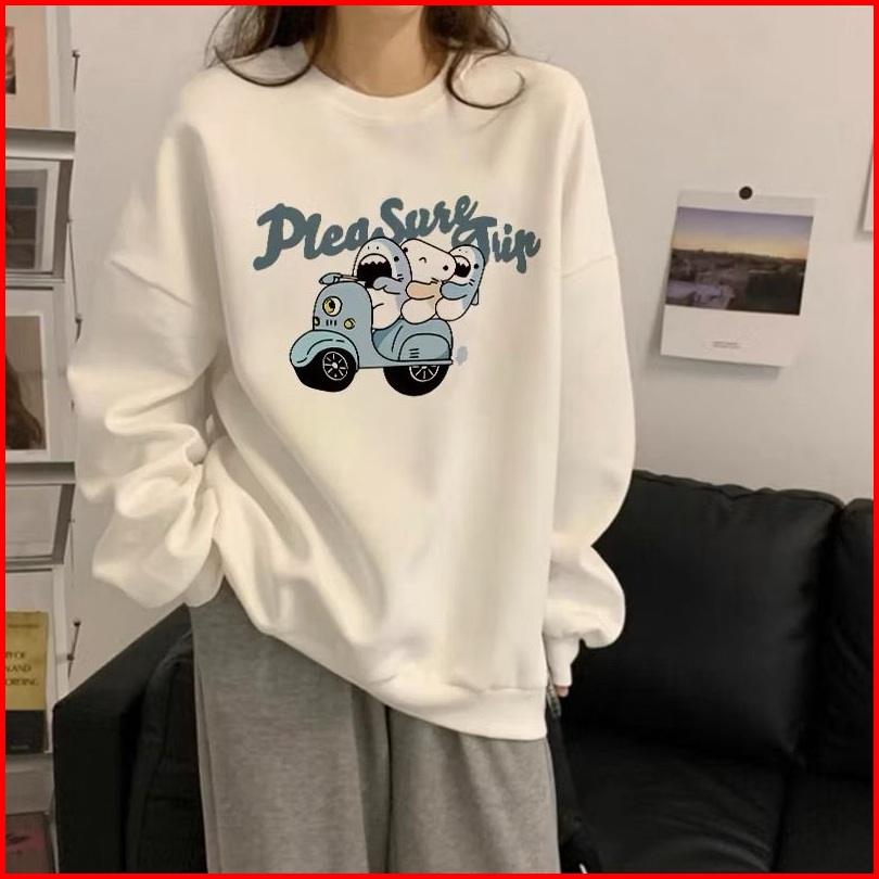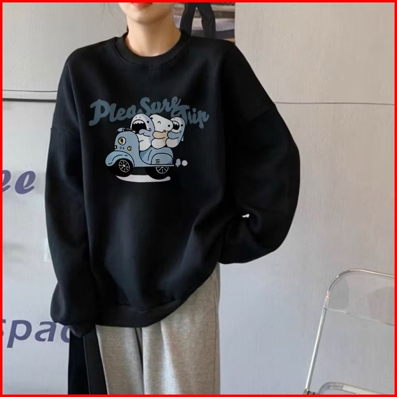Plea Sure Grip Sweater Oblong Crewneck Oversize Wanita