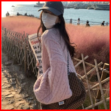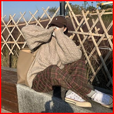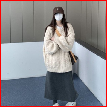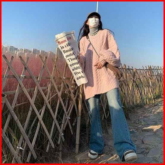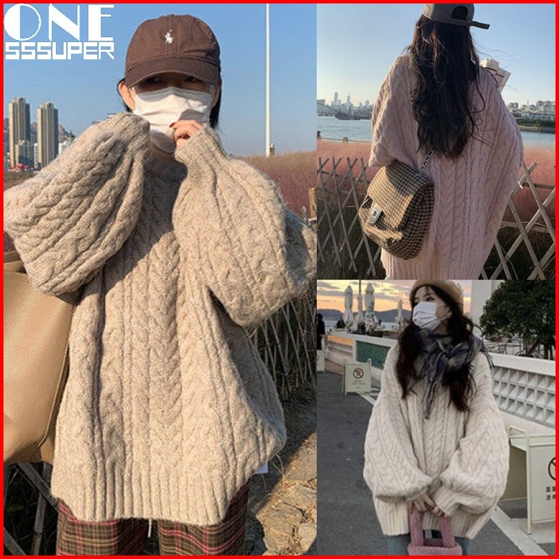 Sweater Rajutan Leher Awak Retro Sweater Rajut Longgar Wanita Ala Korea Sweter Rajutan Tebal Kasual