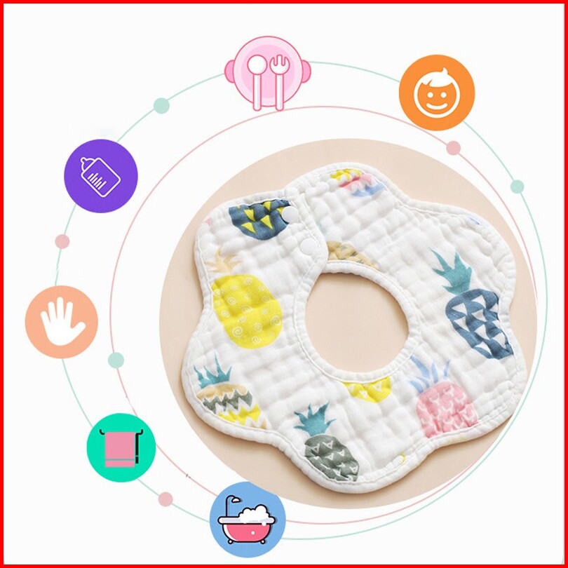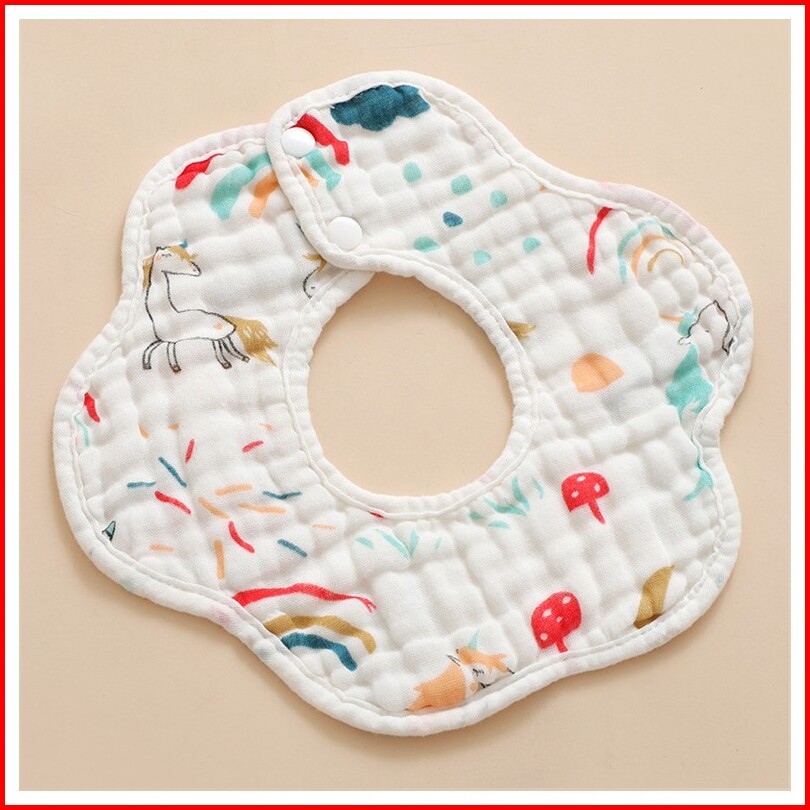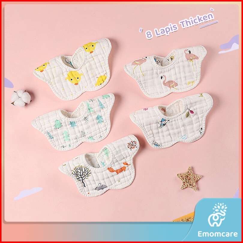 Celemek Bib Air Liur Bayi Slaber 360 Berputar 8 Lapis Bahan Katun Lembut Daya Serap Tinggi