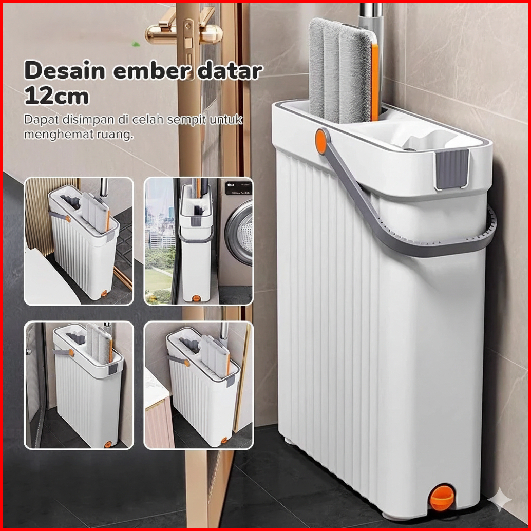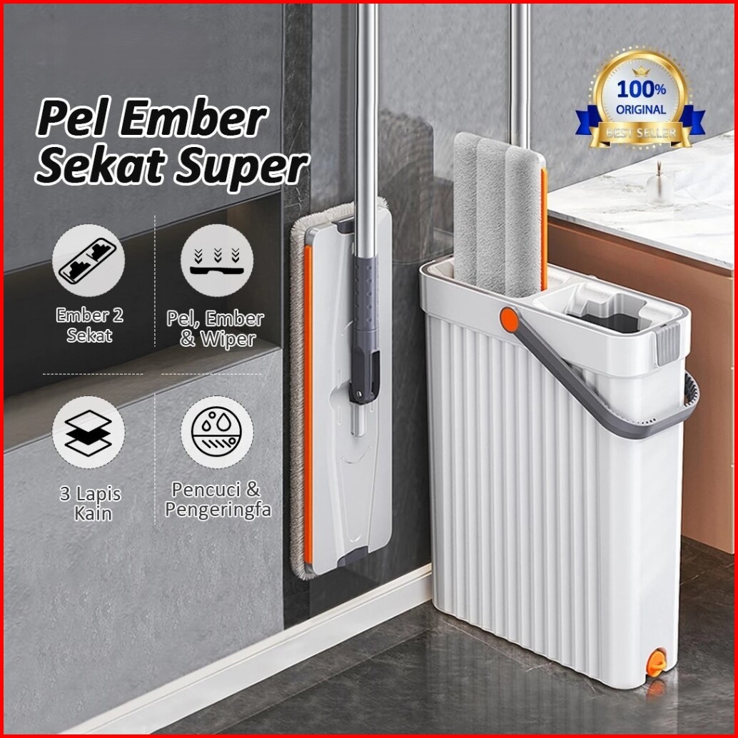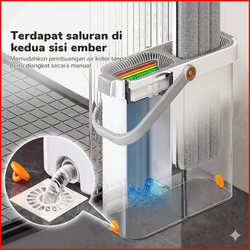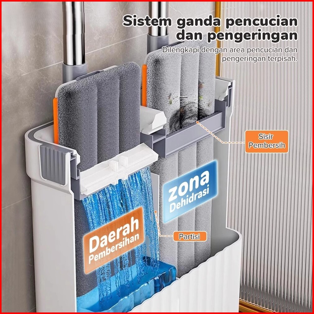 Pel Lantai Otomatis 2-in-1 Ember Sekat 360 Dual Bucket Mop Microfiber Anti Tumpah Alat Pel Lantai Dengan Ember Pemisah S