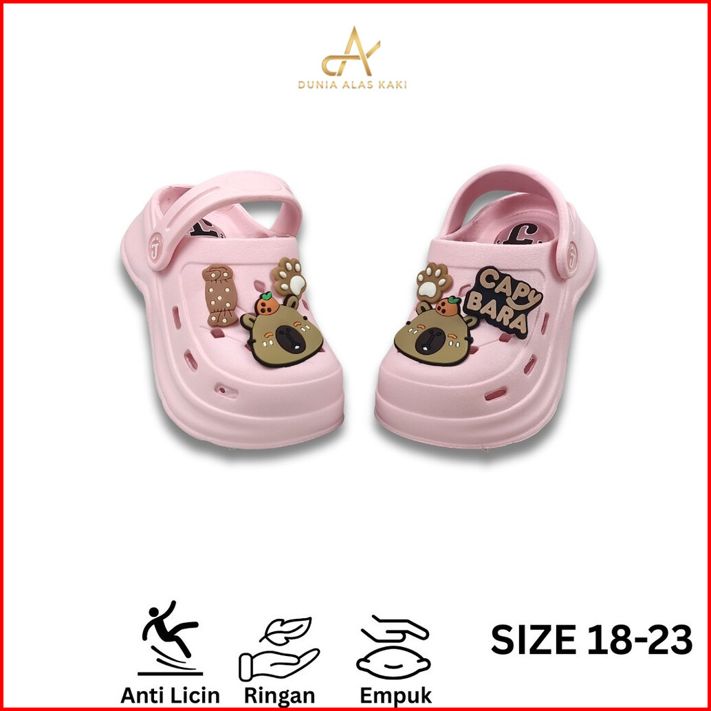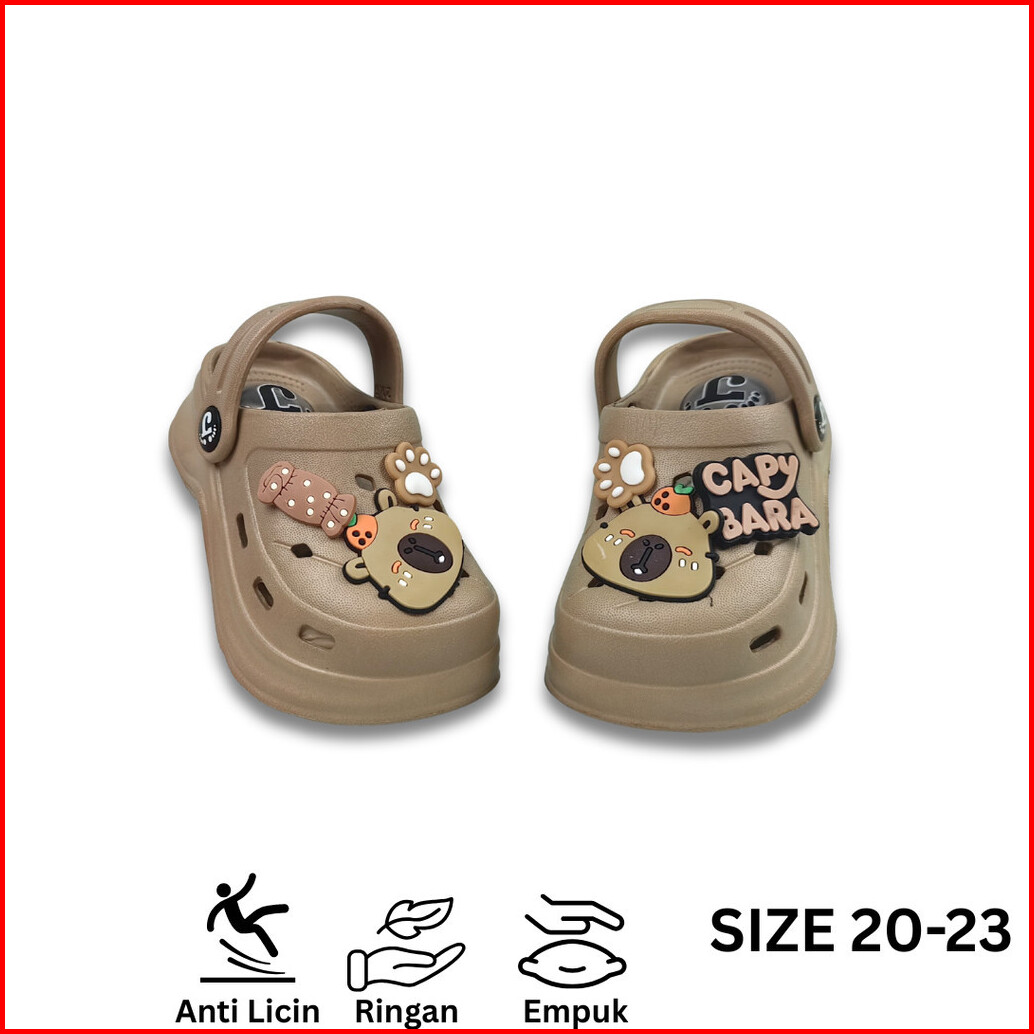 Dak Sendal Anak Bunyi Citcit Belajar Jalan Size 20-23 Sandal Baim Tali Belakang Jibbitz Capybara