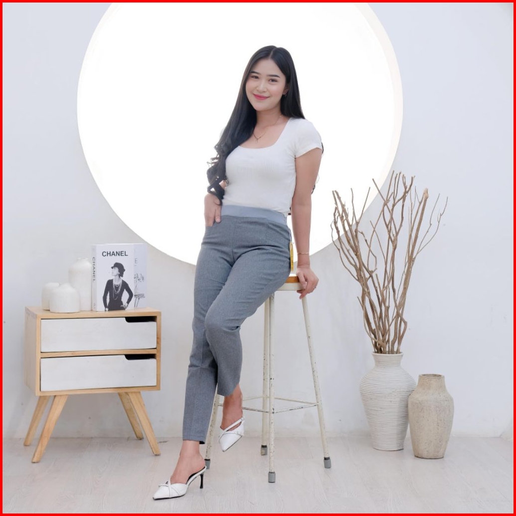 Celana Kantor Wanita Slimfit Pinggang Karet Bahan Semi Wool - Celana Kerja Formal Warna Lengkap Jumbo