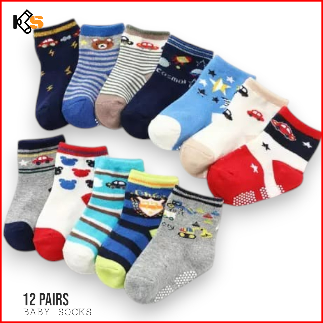 Paket 12 Pasang Kaos Kaki Bayi Laki Laki Perempuan Motif Karakter Lucu Bahan Katun Lembut