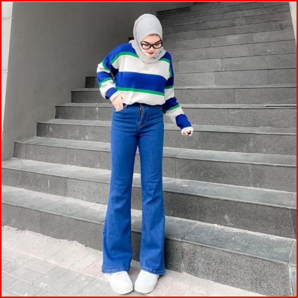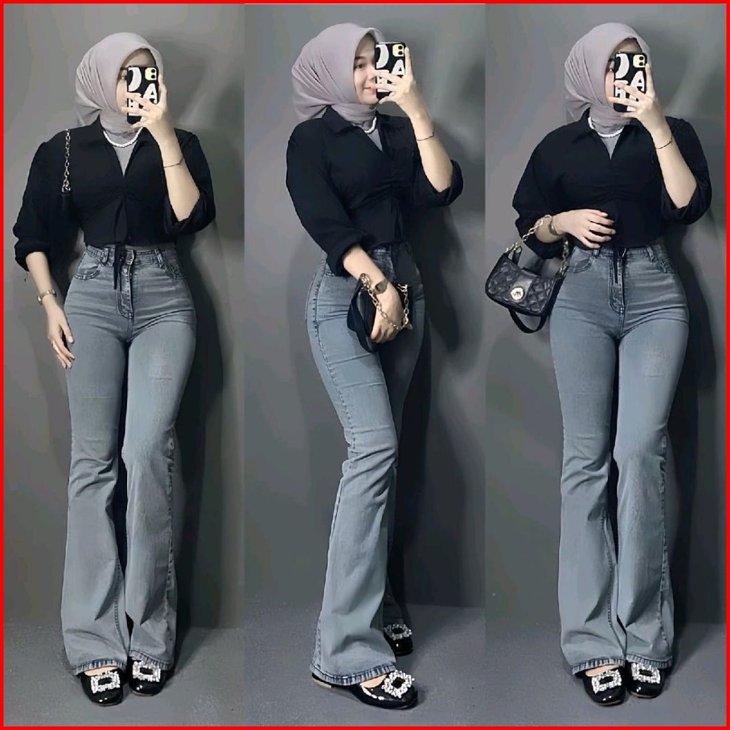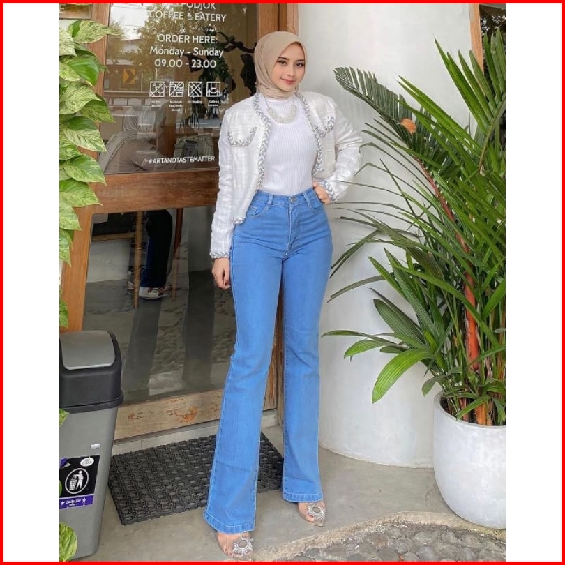 Azzahra - Highwaist Cutbray Jeans Wanita Premium - Celana Jeans Stretch Melar Panjang Kekinian Wanita