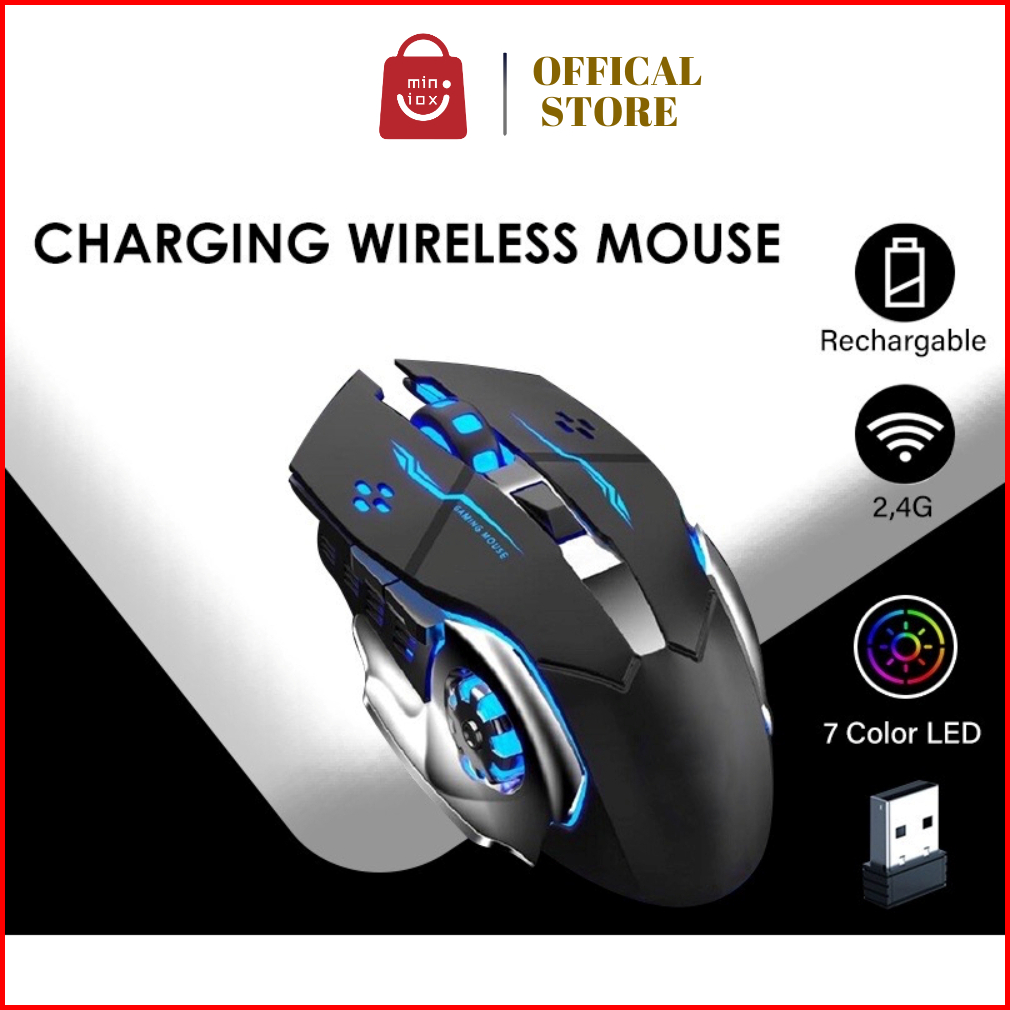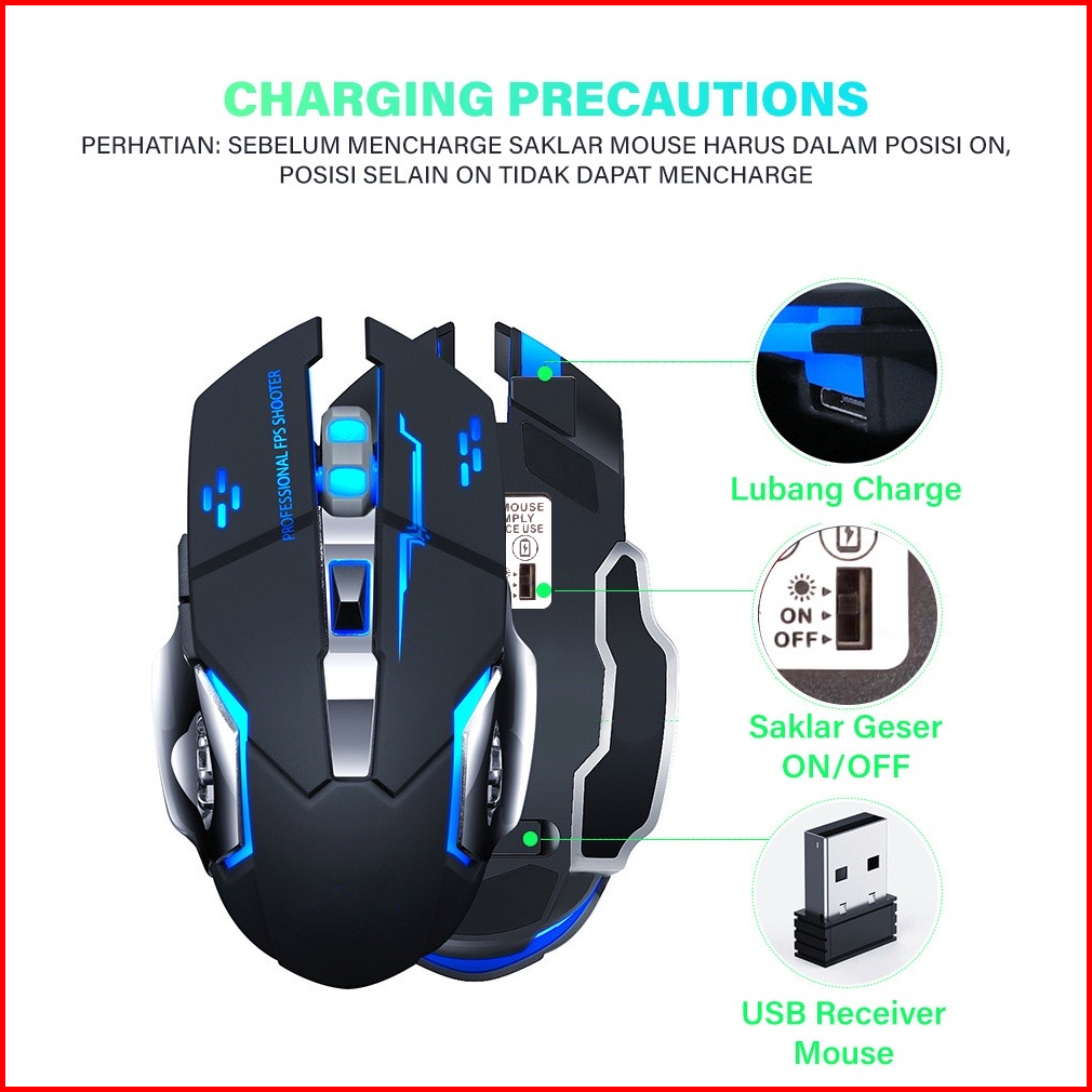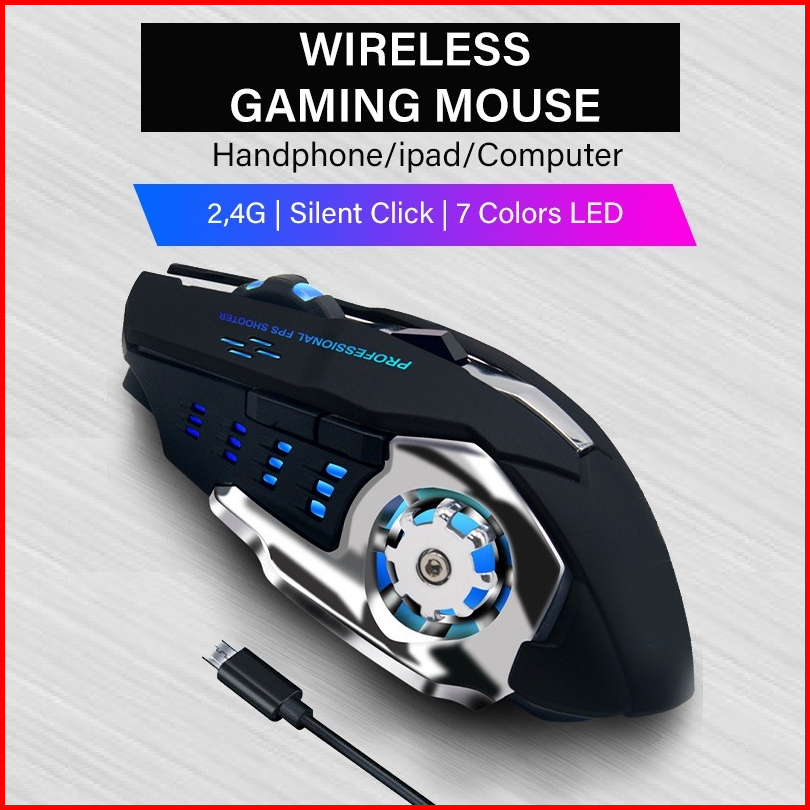 Mouse Wireless Gaming Silent Click Rechargeable Rgb Led Dengan Receiver-usb 2.4g 1600dpi Freewolf X8-black Grey Wireless