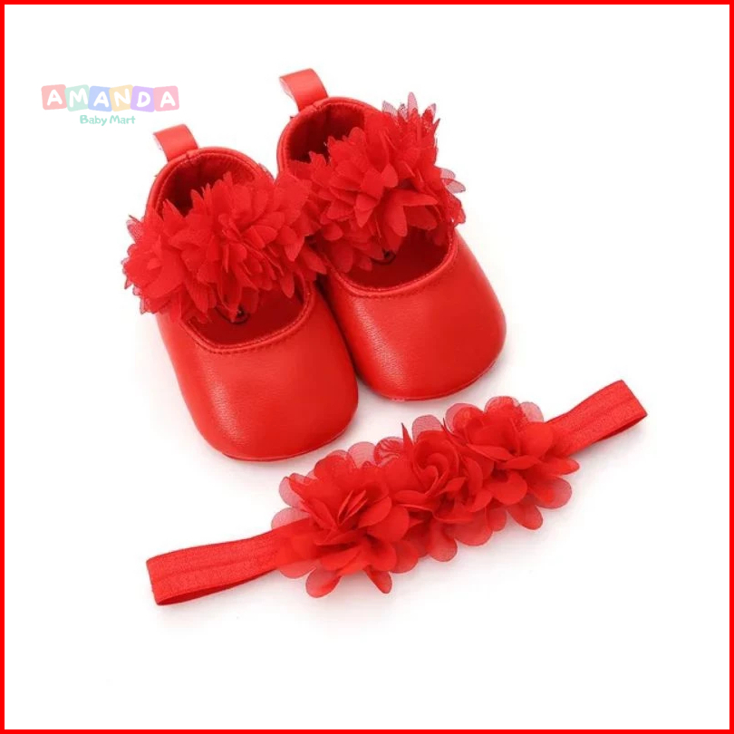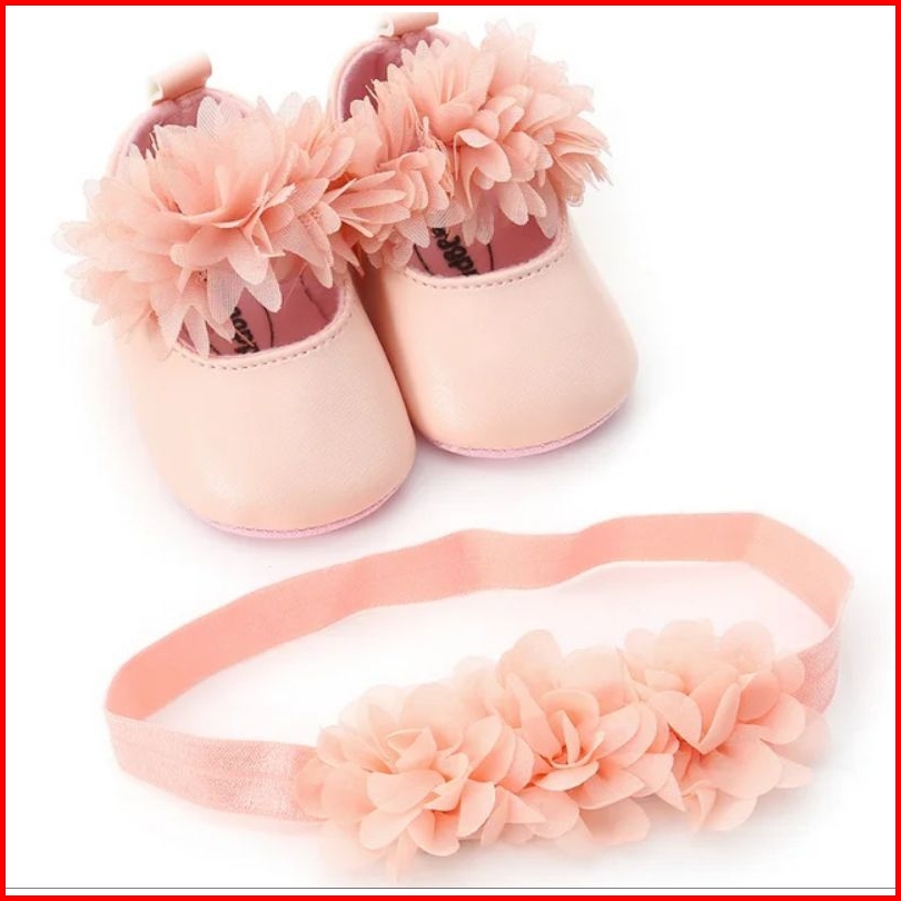 Set Sepatu Bando Anak Bayi Perempuan Usia 0 12 Bulan Terbaru Prewalker Glossy Balita Cewek Flower