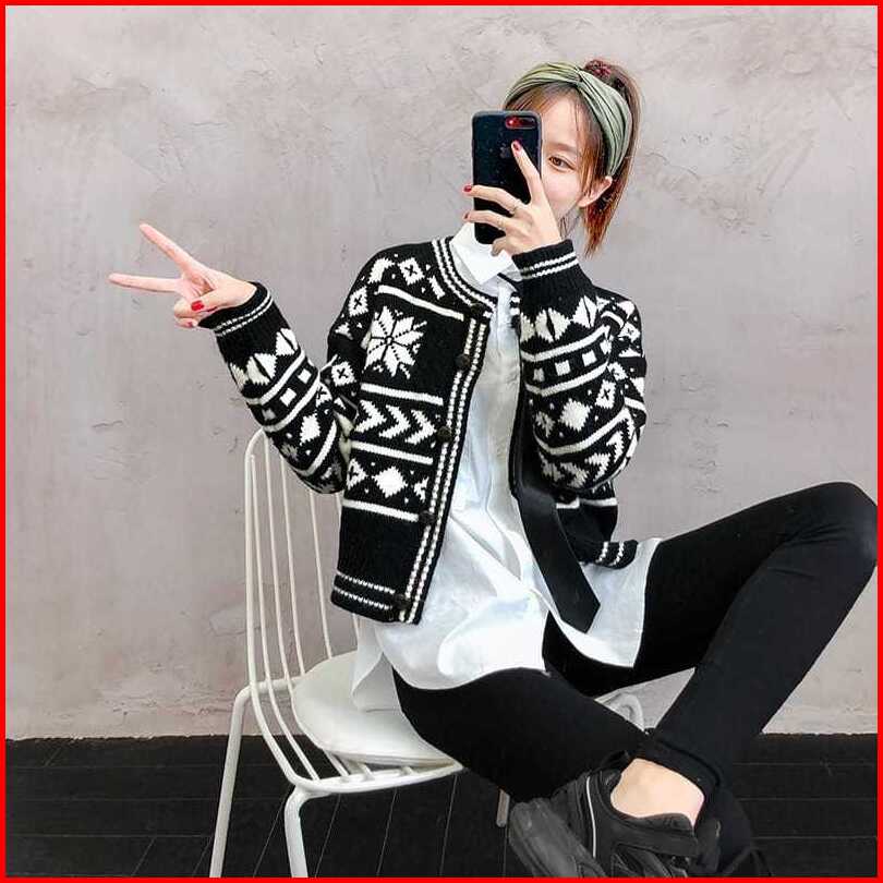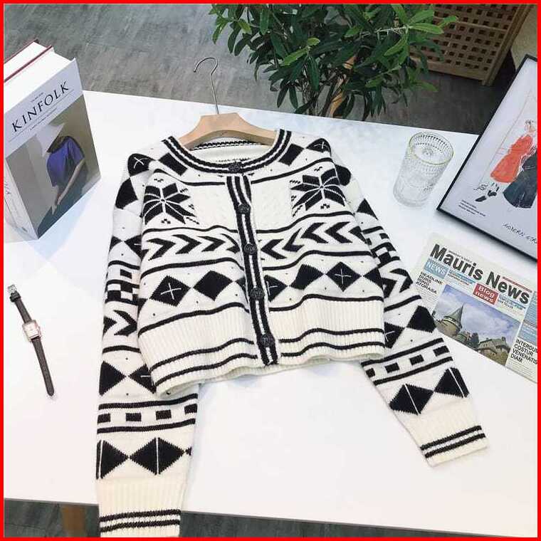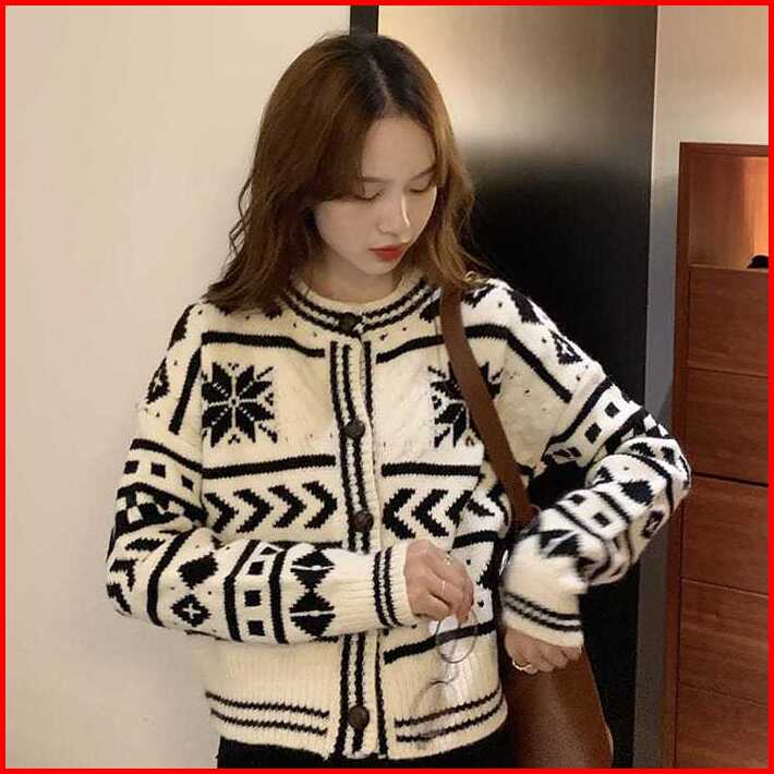 Dwi Rajut Cardigan Woll Motif Vintage Premium Outer Rajut Wanita Lengan Panjang Korean Knit Topz