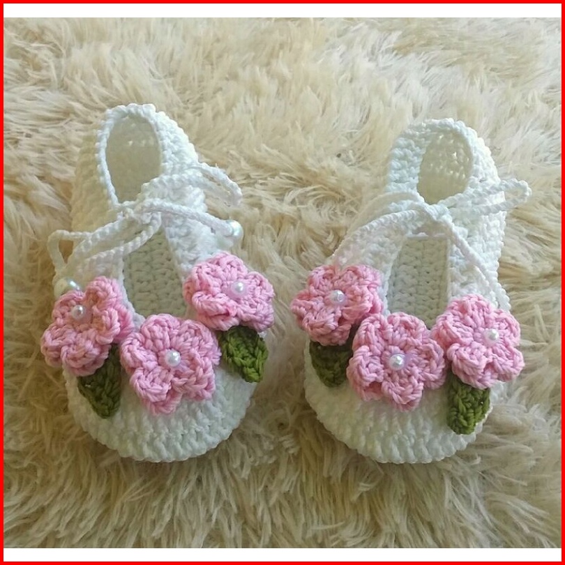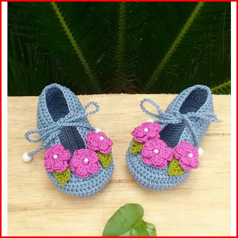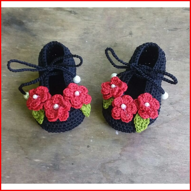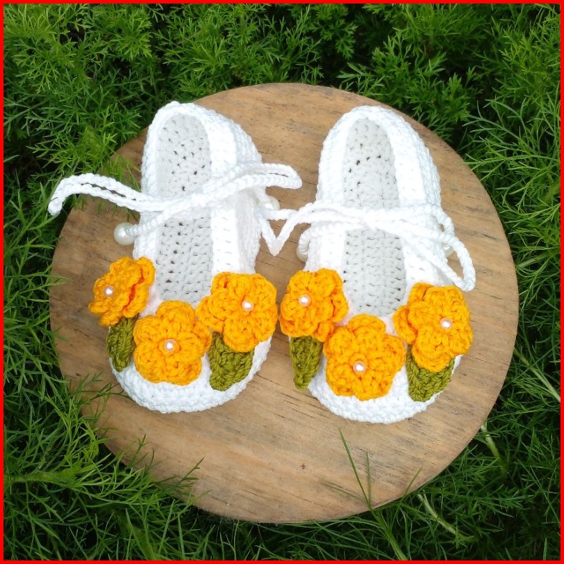 Sepatu Bayi Perempuan 0 Smp 1 Thn Rajut Handmade Bunga Tali Cantik Lucu Bagus Murah Tangan Pertama