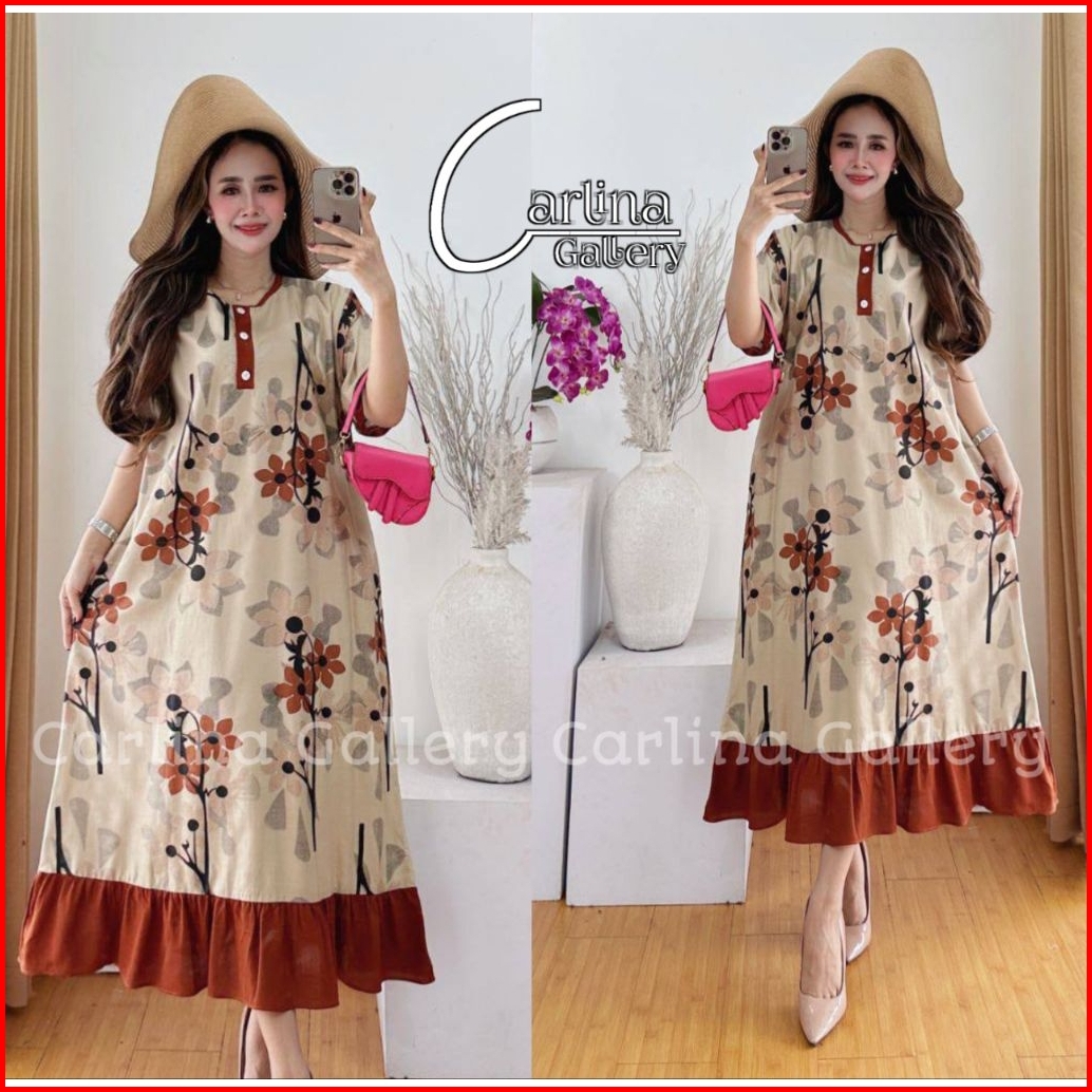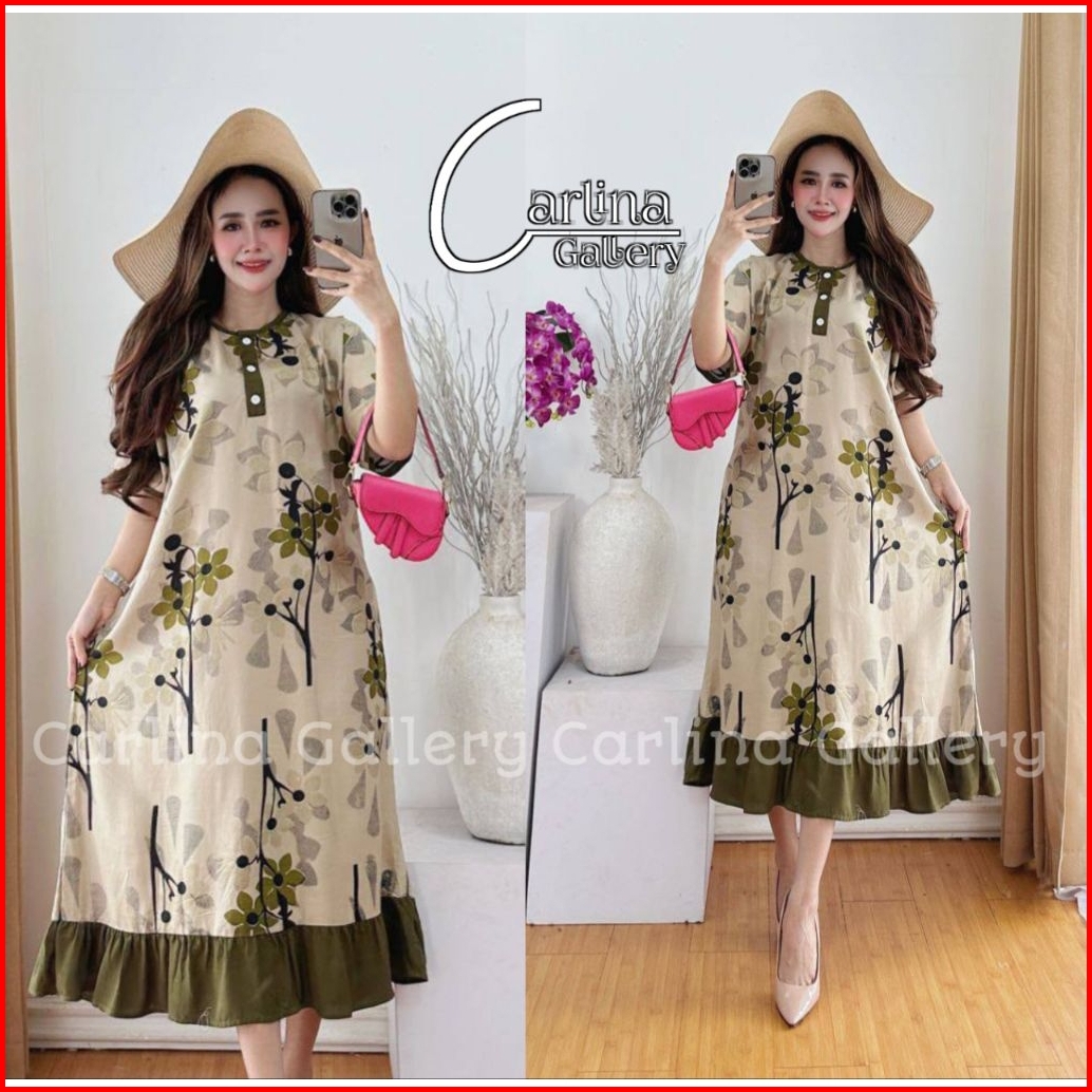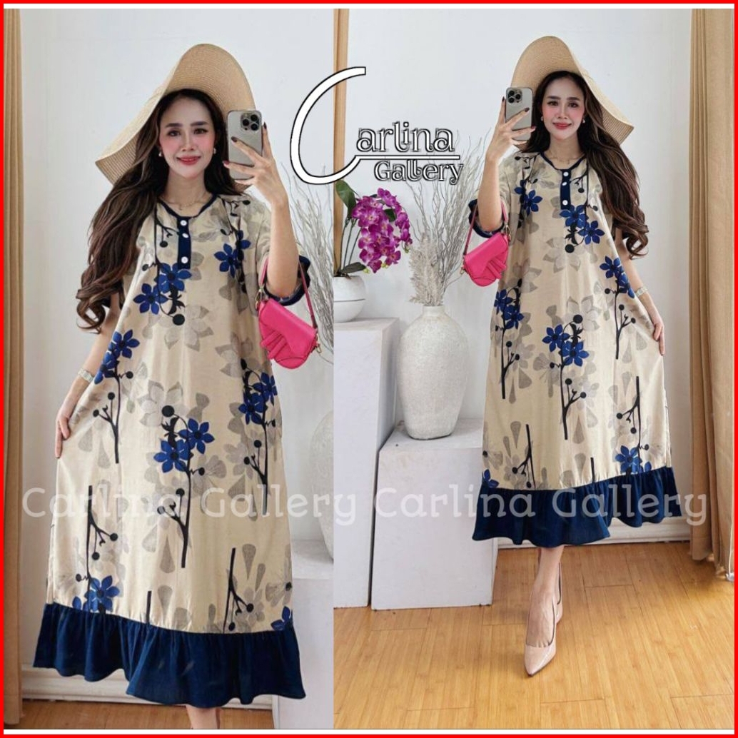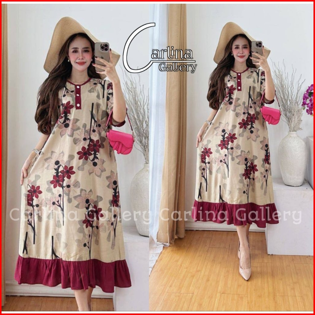 Daster Piyama Motif Bunga Bahan Rayon Premium Kancing Busui Friendly Dress Wanita Muda Kekinian