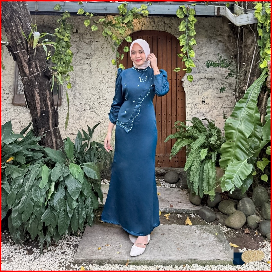 Alena Dress Satin Silk Premium Wanita Kondangan Muslim Body Fit Viral Mermaid 2025 Dres Satin Mewah