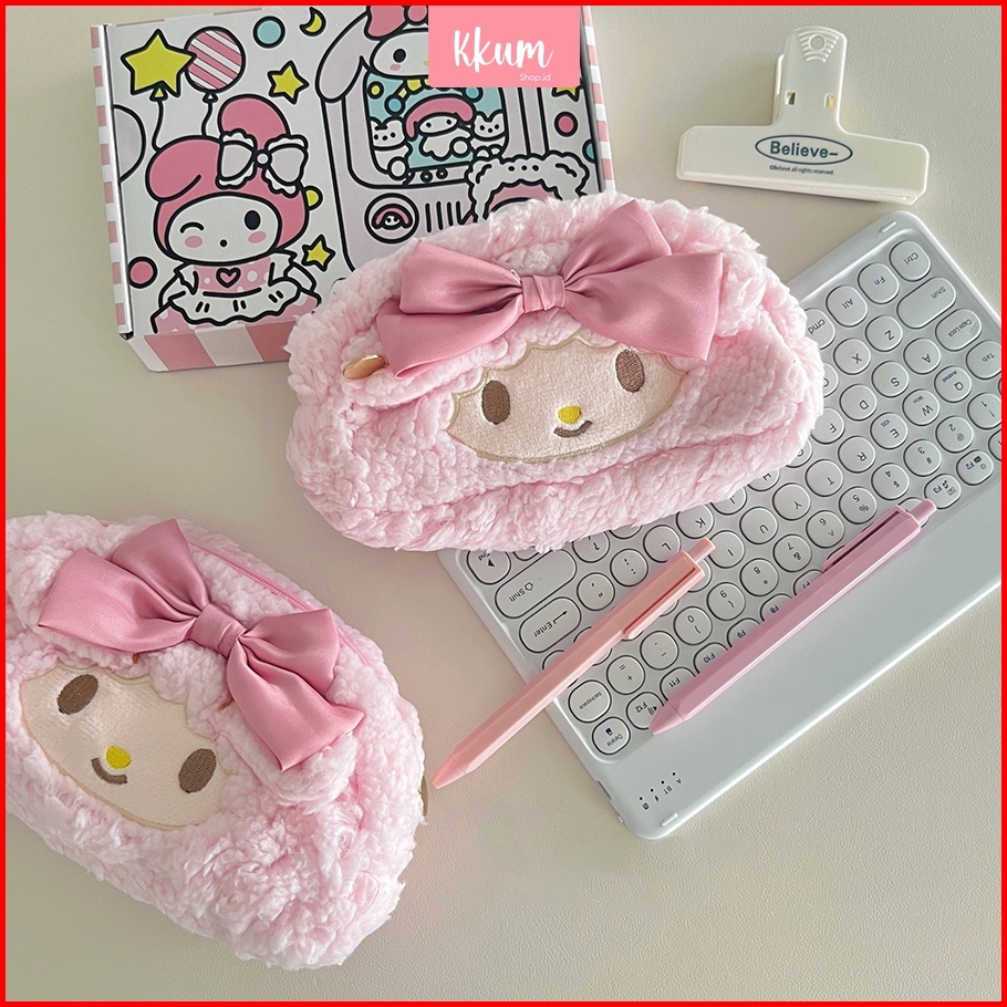 Kotak Pensil Fluffy Cute Pink Pencil Case Large Kawaii Stationery School Supplies