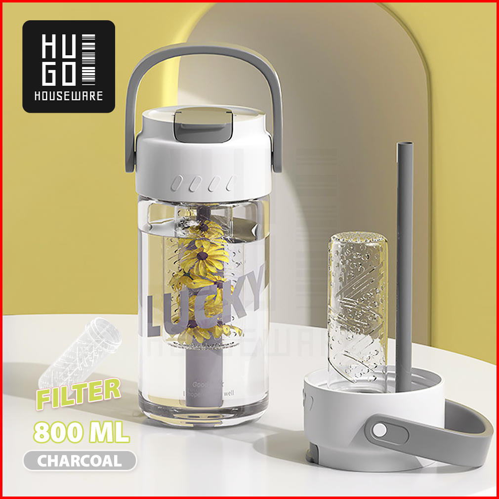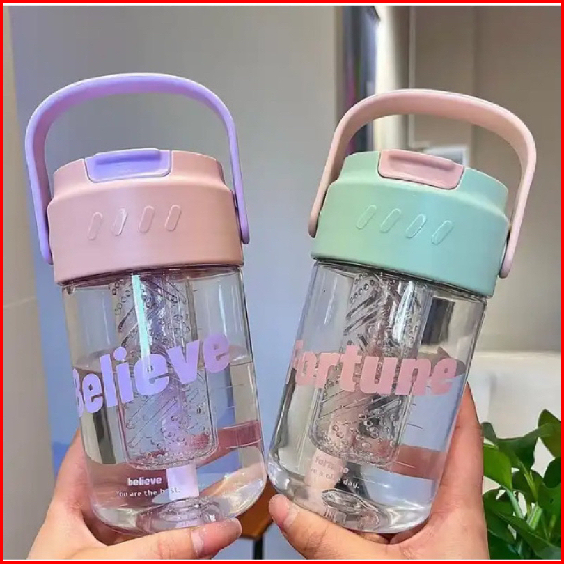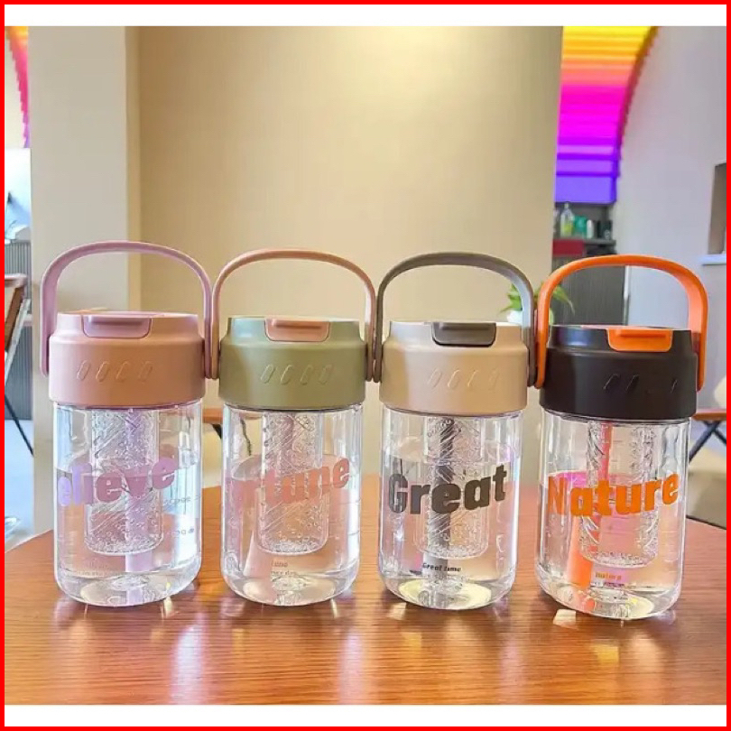 Botol Minum 800ml Transparan Infused Water Bottle Botol Minum Anak Sedotan Dengan Pegangan