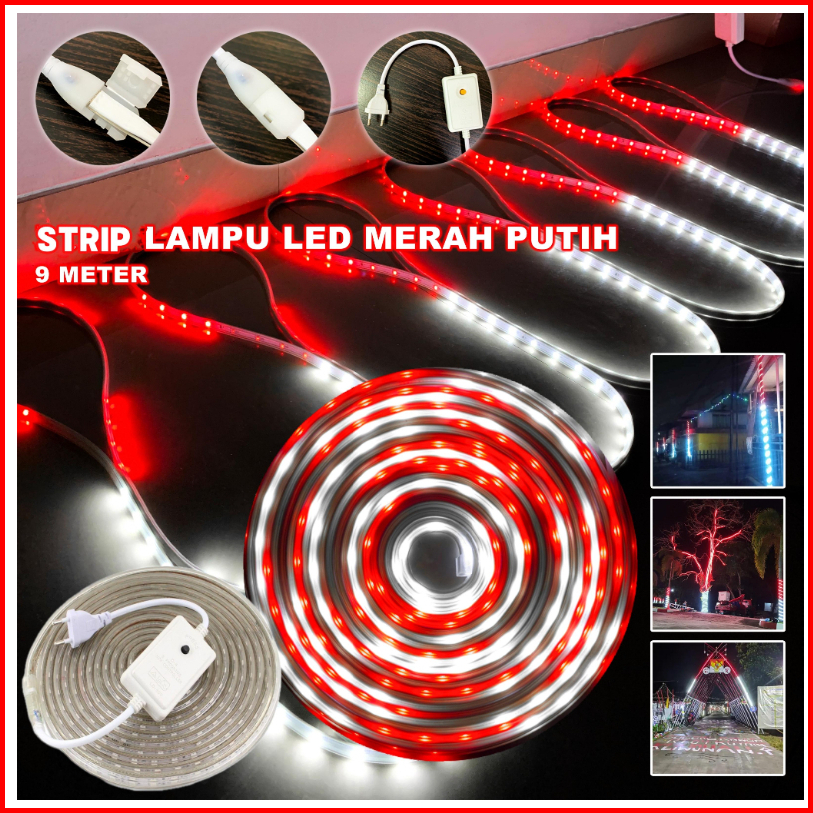 Lampu Led Strip Selang Paket Merah Putih 3528 2835 220v Adaptor 8m Outdoor Led Strip Agustus Lampu