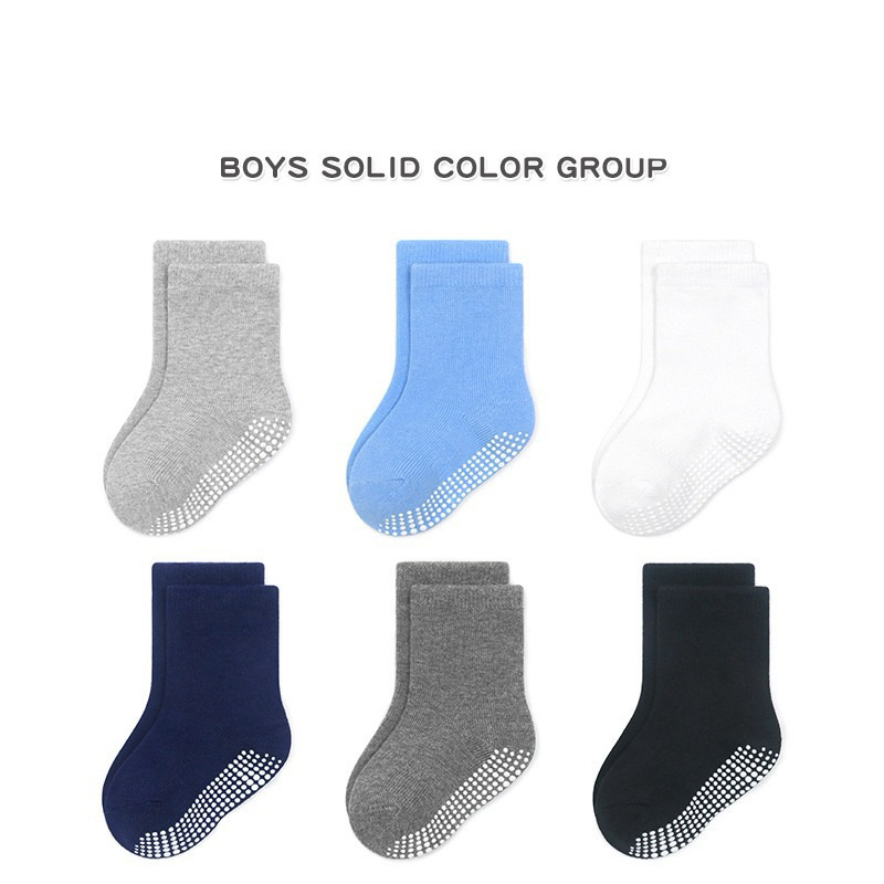 6pasang Kaos Kaki Anak Antislip Model Panjang Polos Dan Panjang Strip