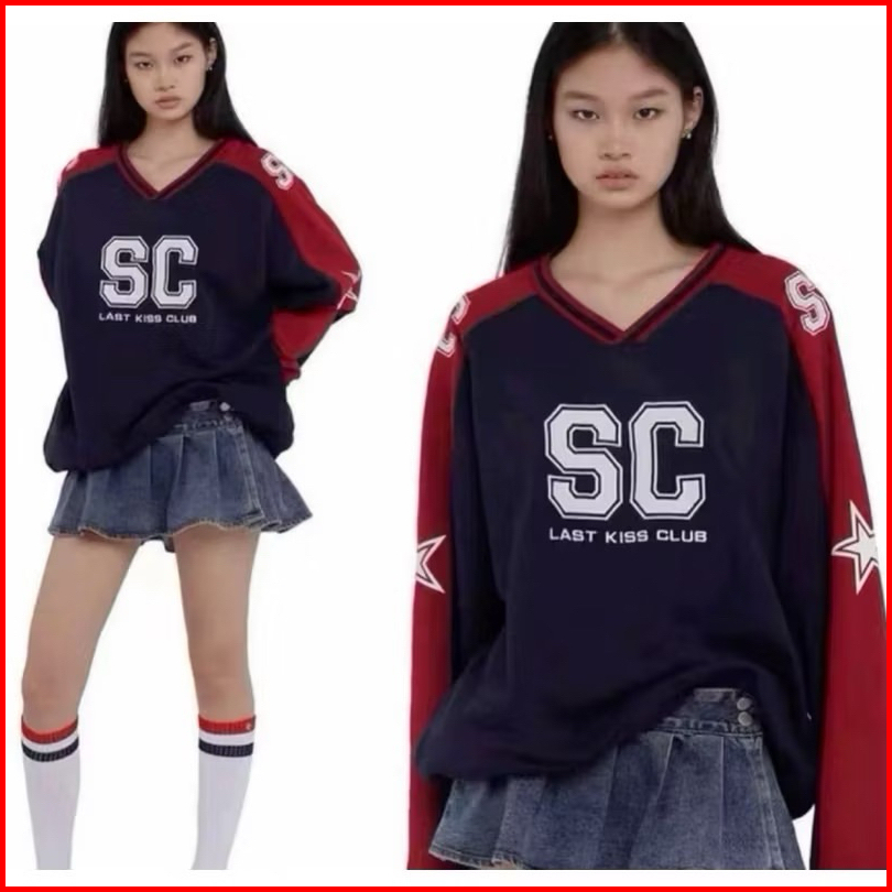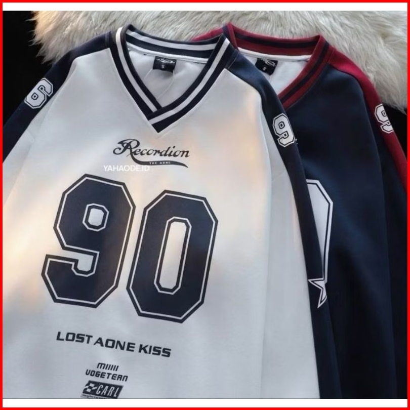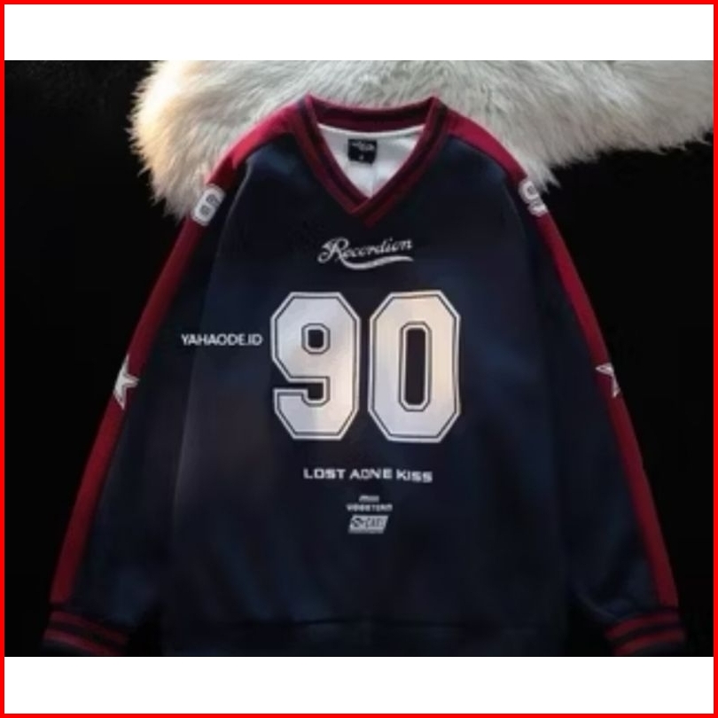 90 American Sweater Oversize Desain Atasan Longgar Sweatshirt