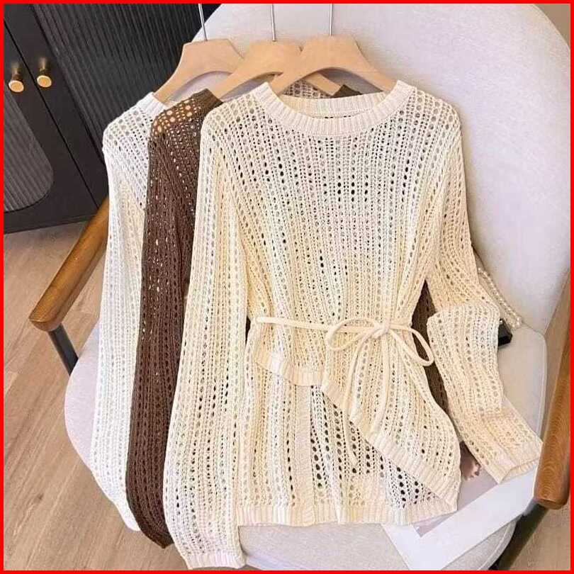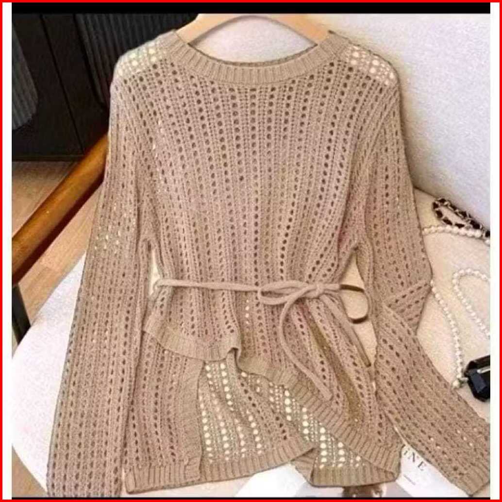 Yuruma Sweater Rajut Jaring Tali Knitwear Premium Wanita Atasan Wanita