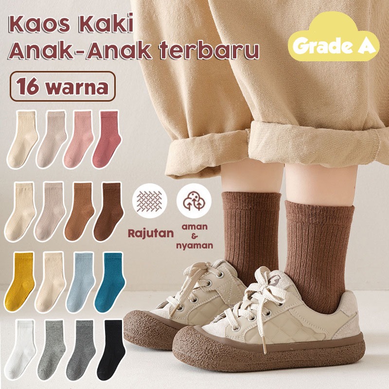 Sunny.Lucas (1-12Tahun)Katun Murni Socks good quality gaya Kaos kaki anak perempuan Kaos Kaki Anak Plain Socks kaki anak laki laki