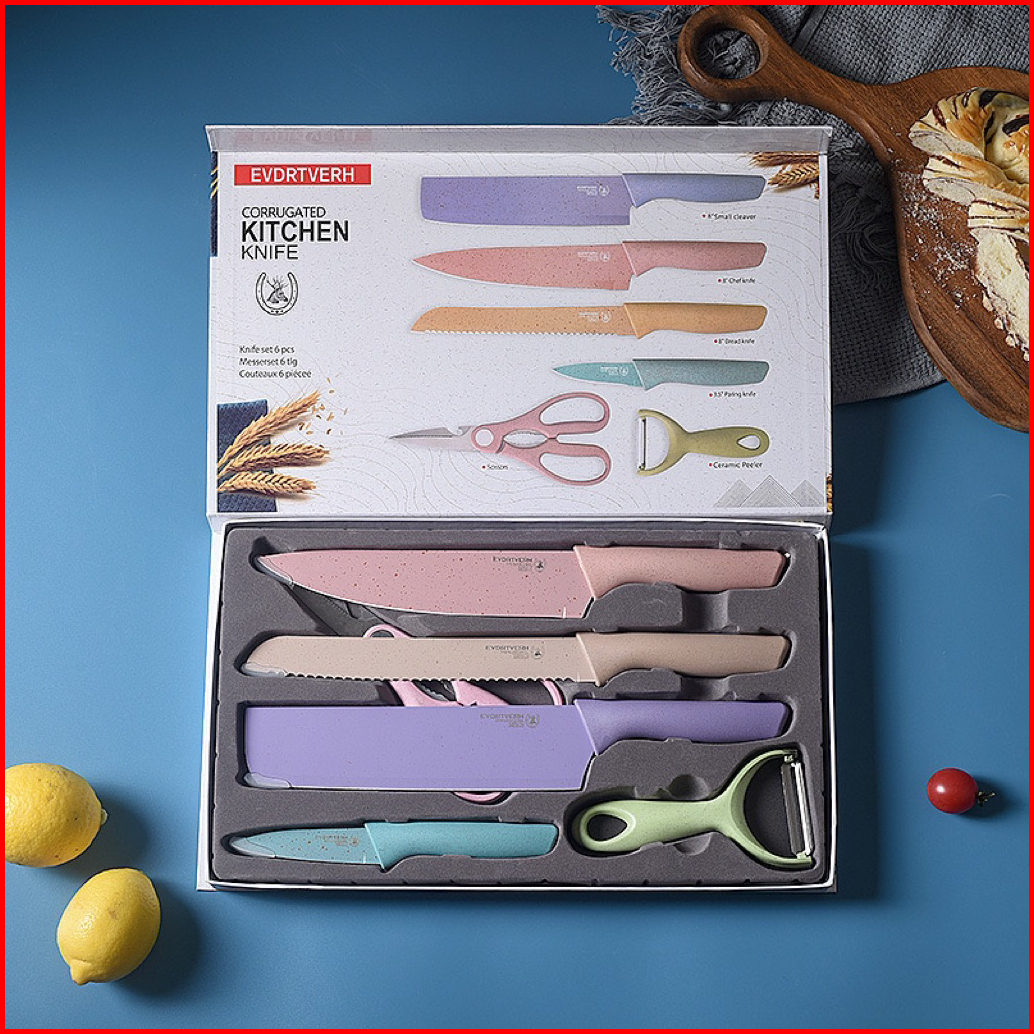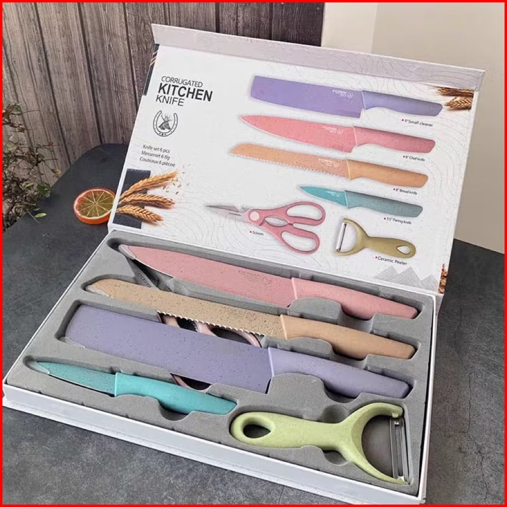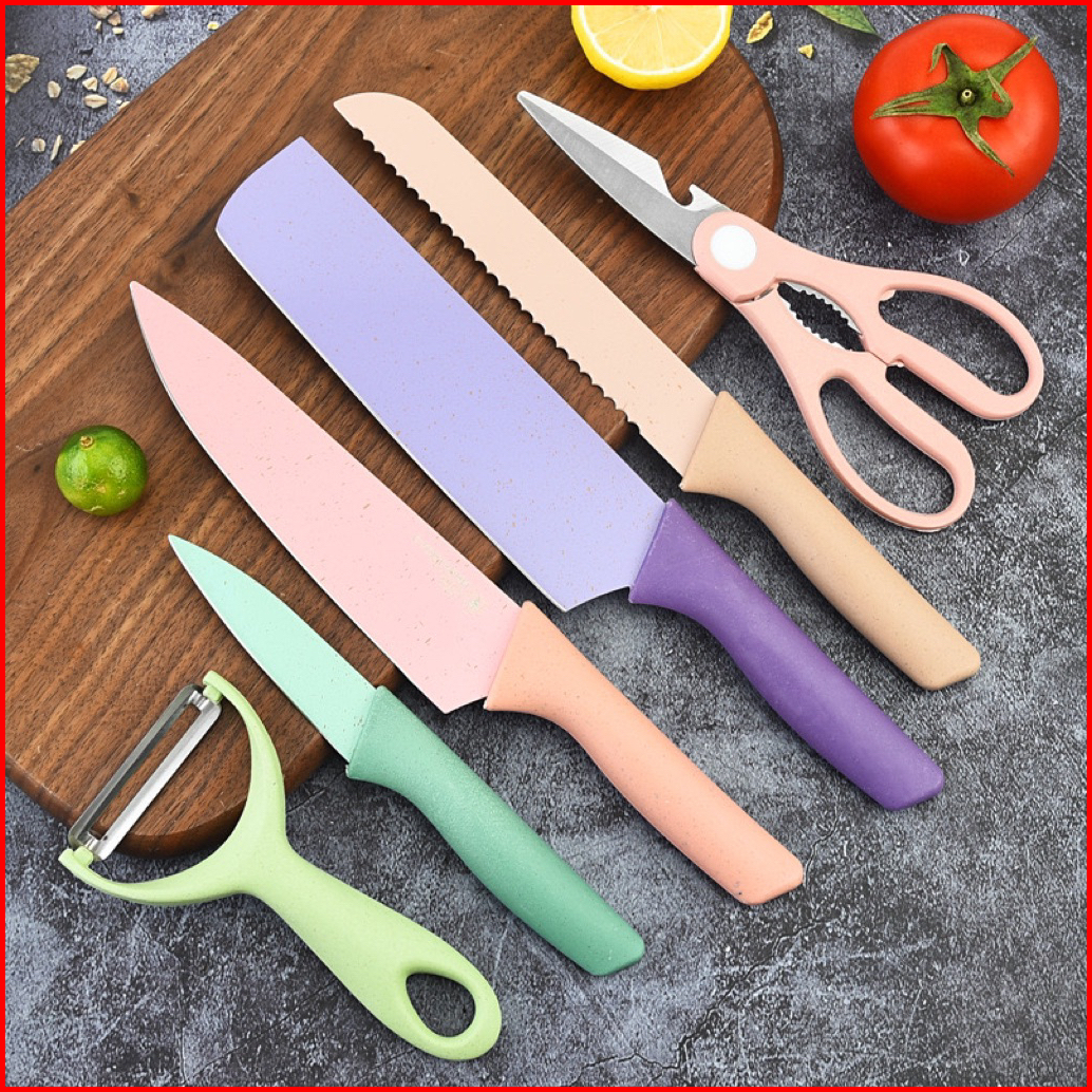 Mfh - Pisau Dapur Set 6 In 1 Bahan Stainless Steel Pisau Set Pisau Buah Pisau Daging Pisau Roti Gunting Set Pengupas Bua