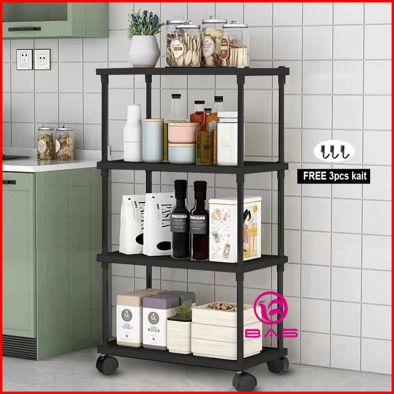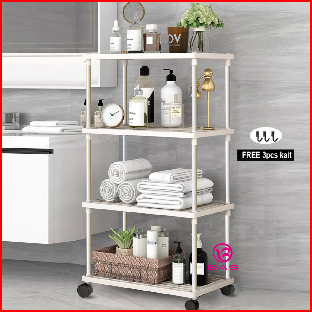 Bas Rak Susun Serbaguna Rak Dapur Plastik Rak Kamar Mandi 4 Tingkat Free 3 Cantolan Dengan Roda