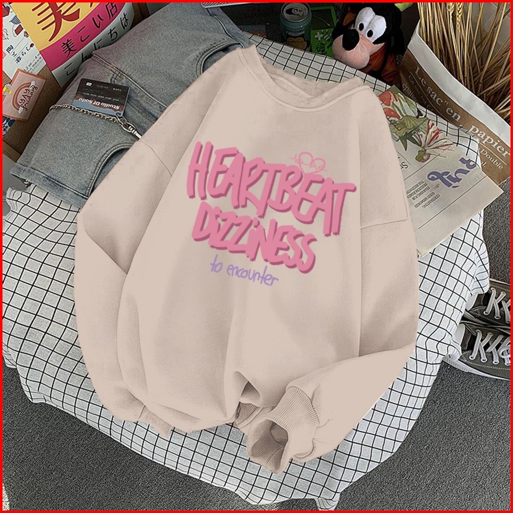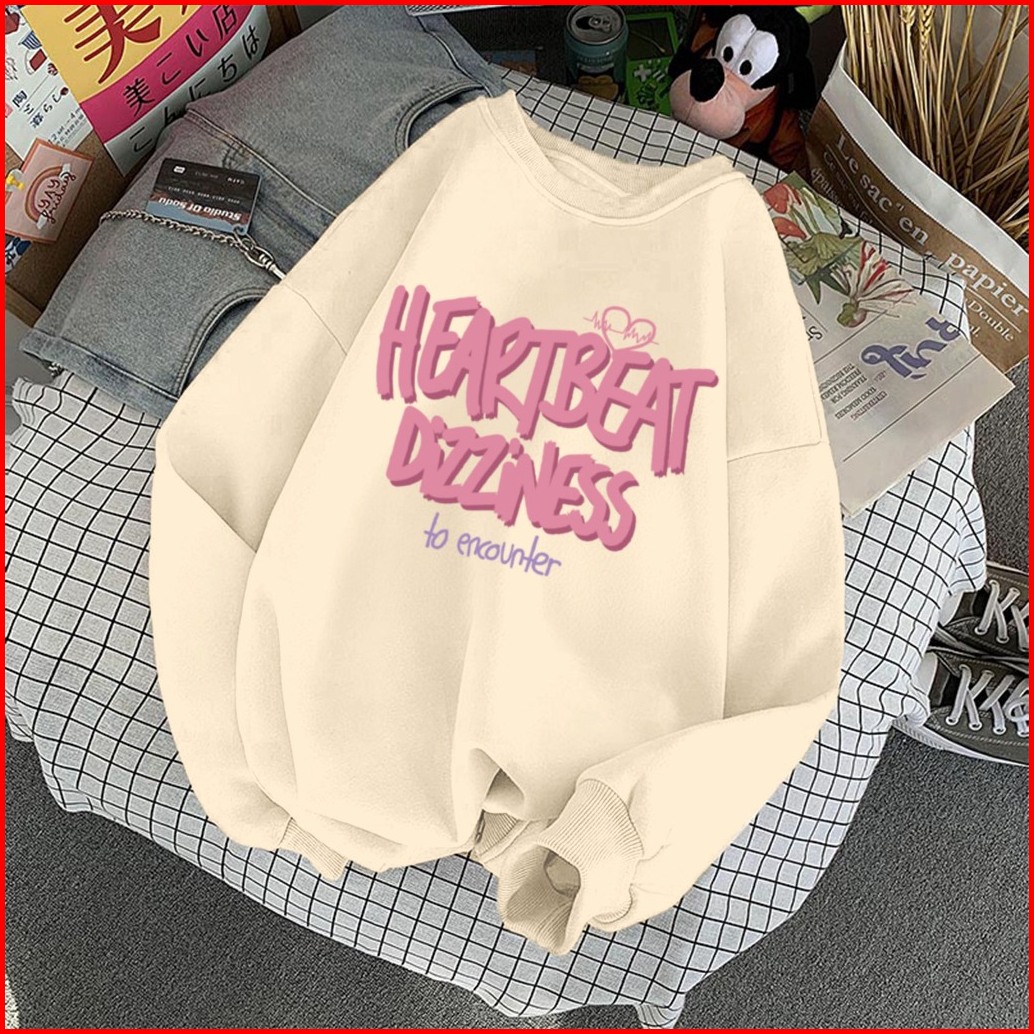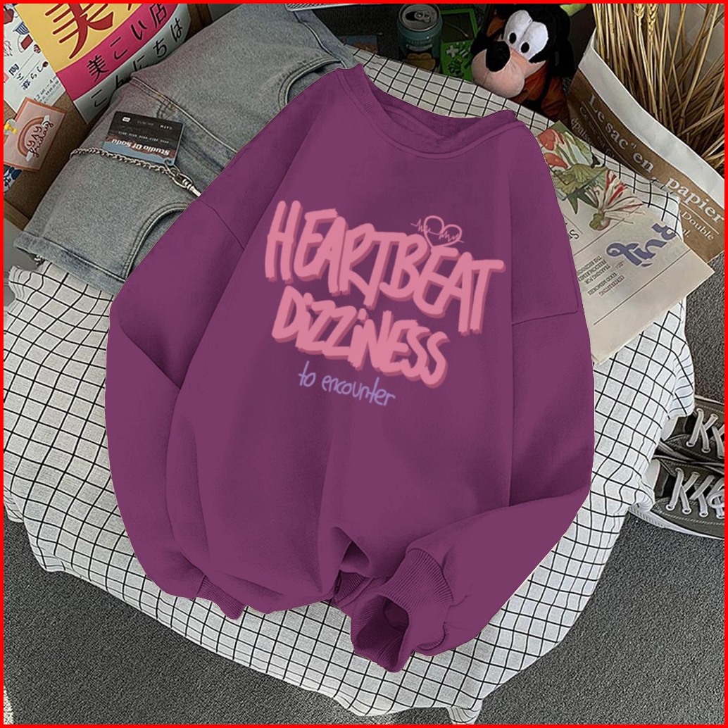 Sweater Lengan Panjang Oversized Heartbeat Love Street Style Korean Style Switer Wanita Oversize Sweatshirt Heribeit Dil