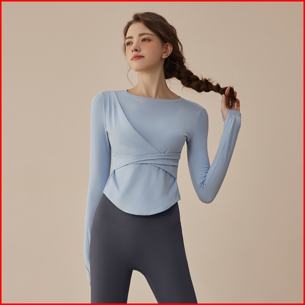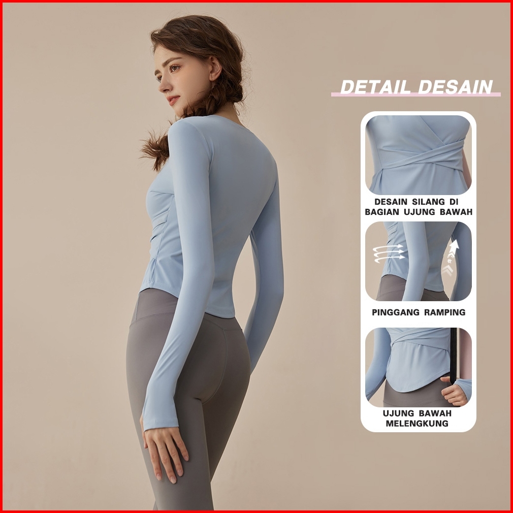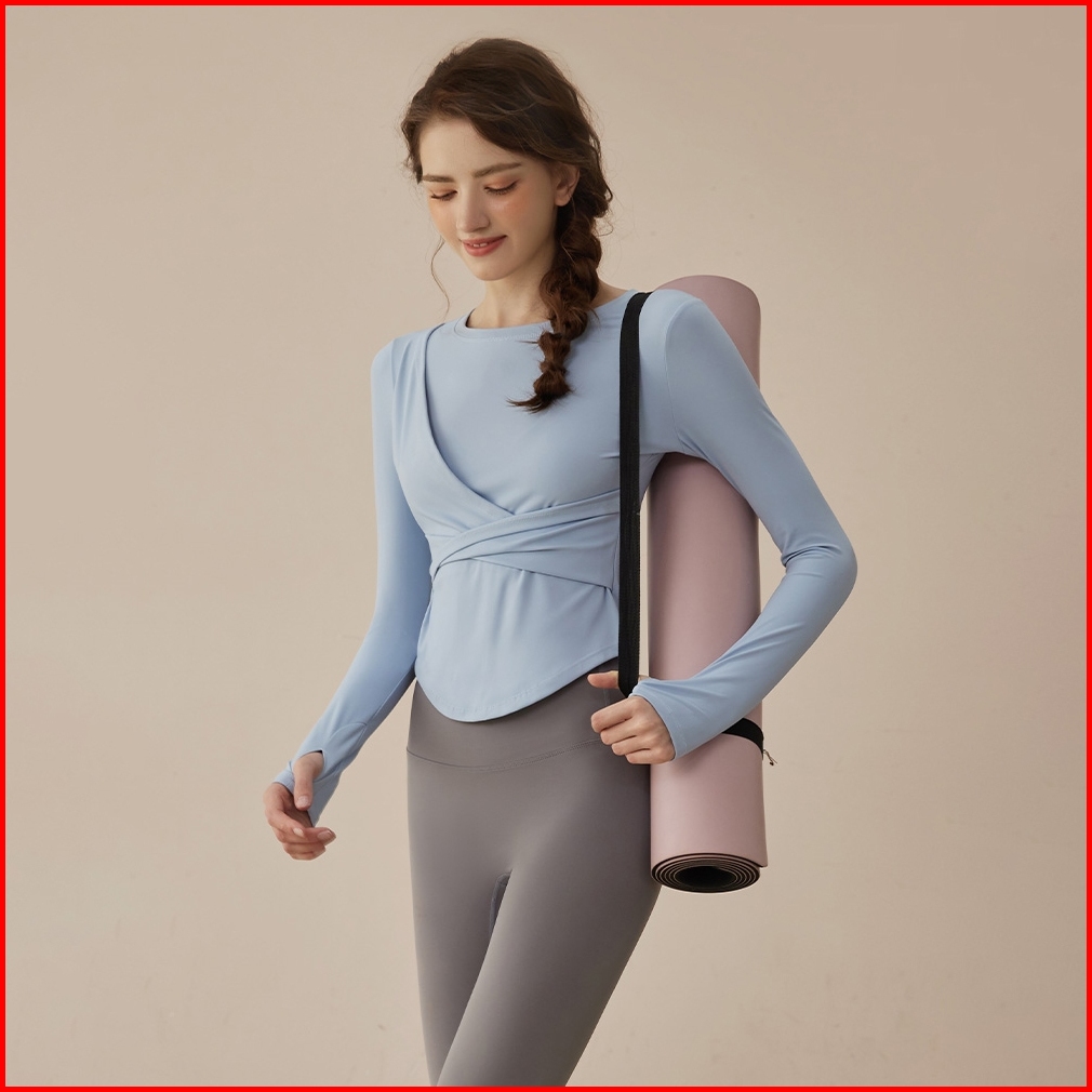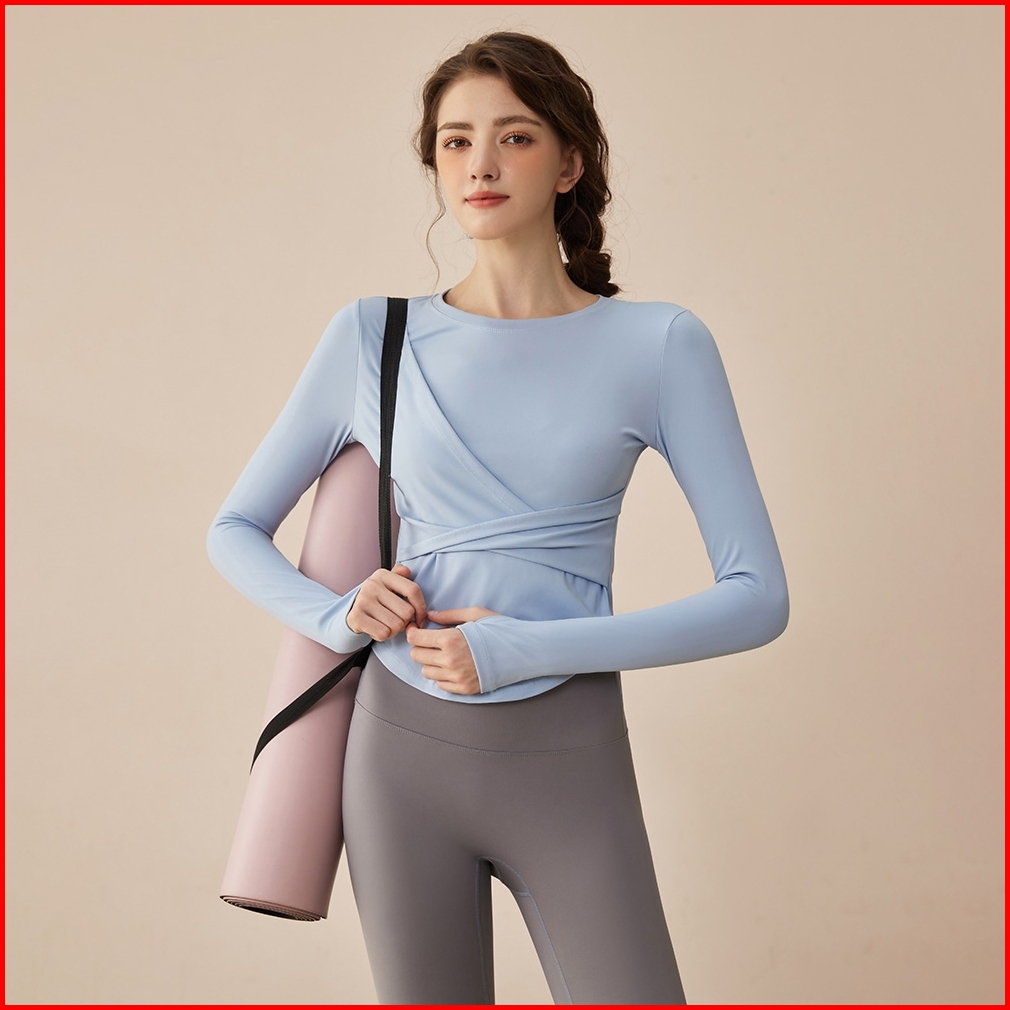 Yobao Baju Olahraga Wanita Yoga Top Baju Pilates Kemeja Wanita Lengan Panjang
