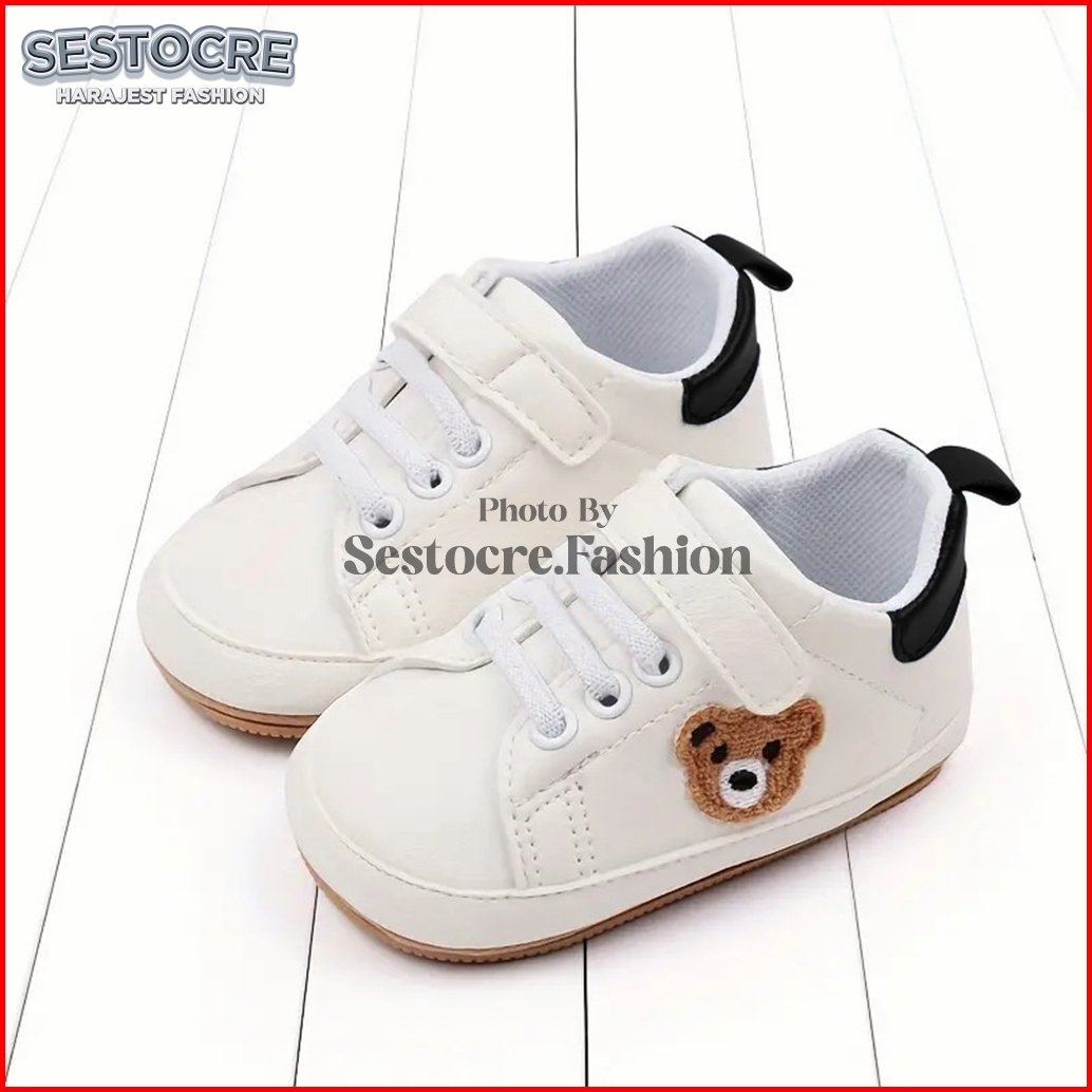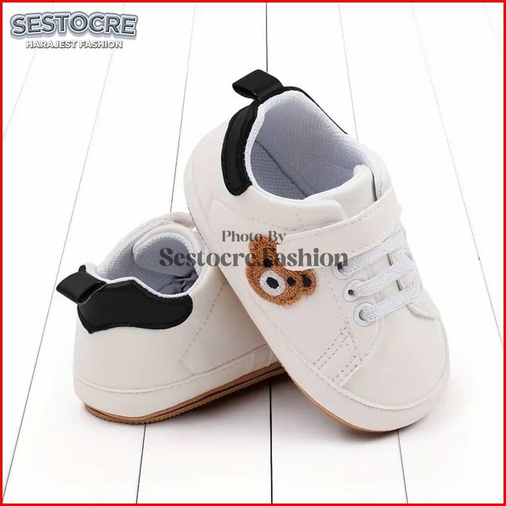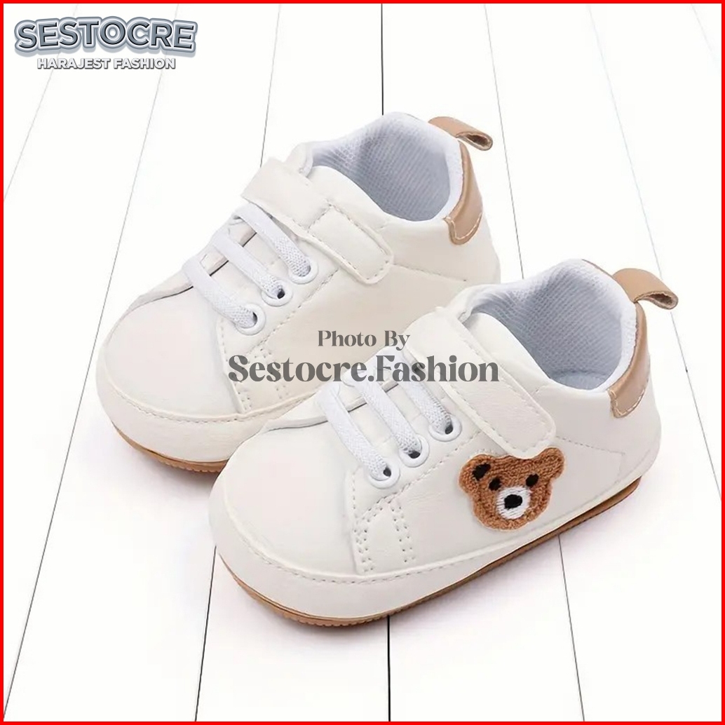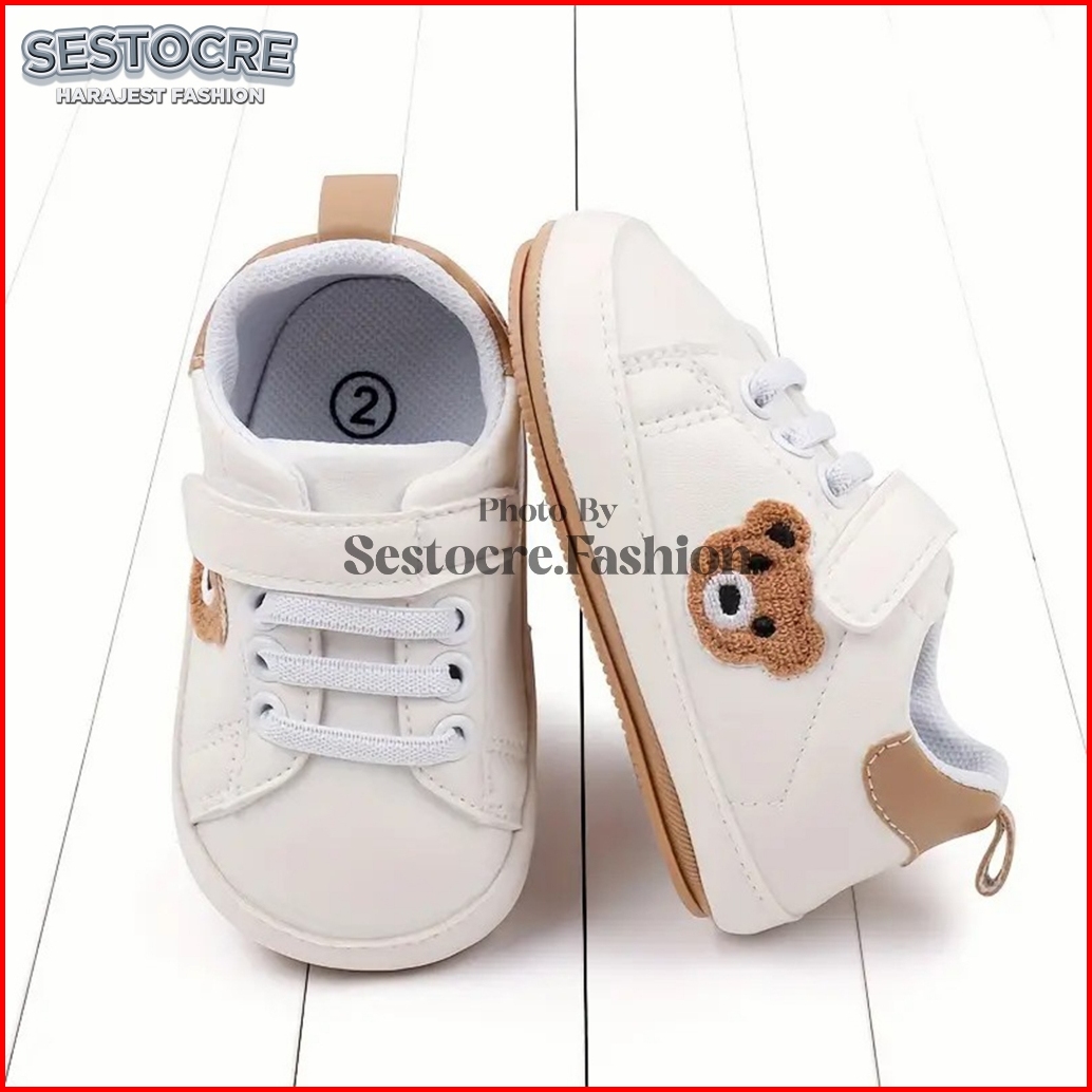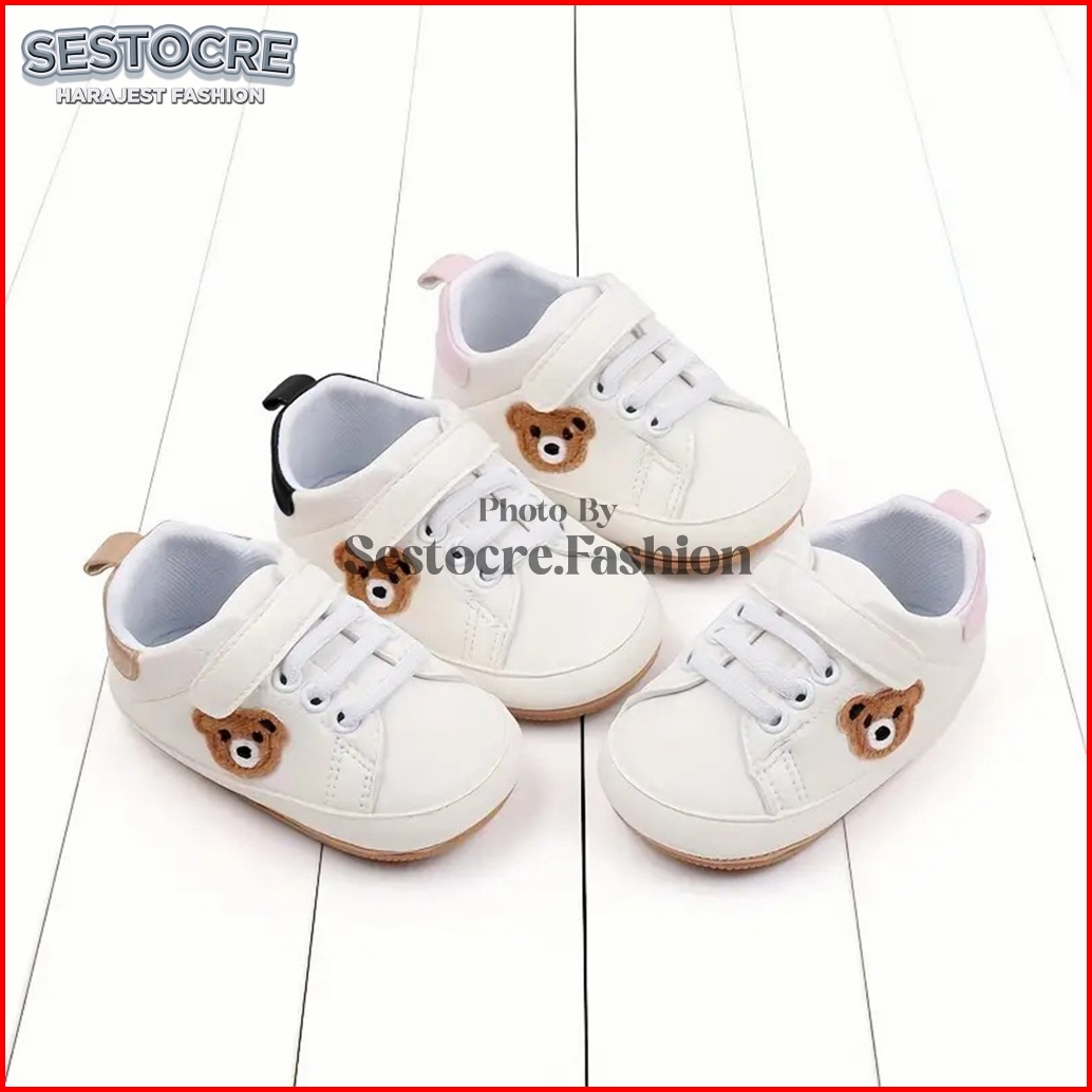 Sepatu Bayi Perempuan Laki Laki Berbahan Lembut Sol Anti Slip - Usia 0 3 6 9 12 Bulan Murah Berkualitas Design Teddy Bea