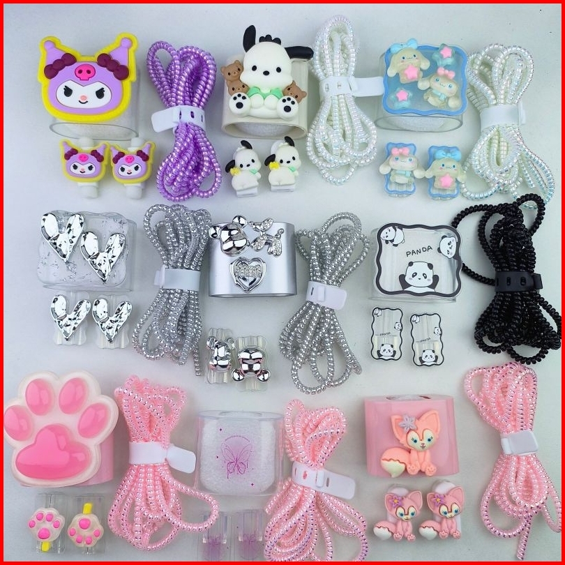 Cute 3d - Set Paket Cover Pelindung Kepala Kabel Charger Spiral Cable Set Protector - Compatible For Iphone Android