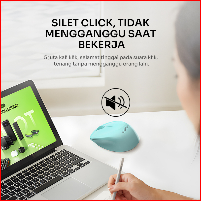 Robot M210s 2.4g Wireless Silent Click Optical Usb Mouse - Free Baterai