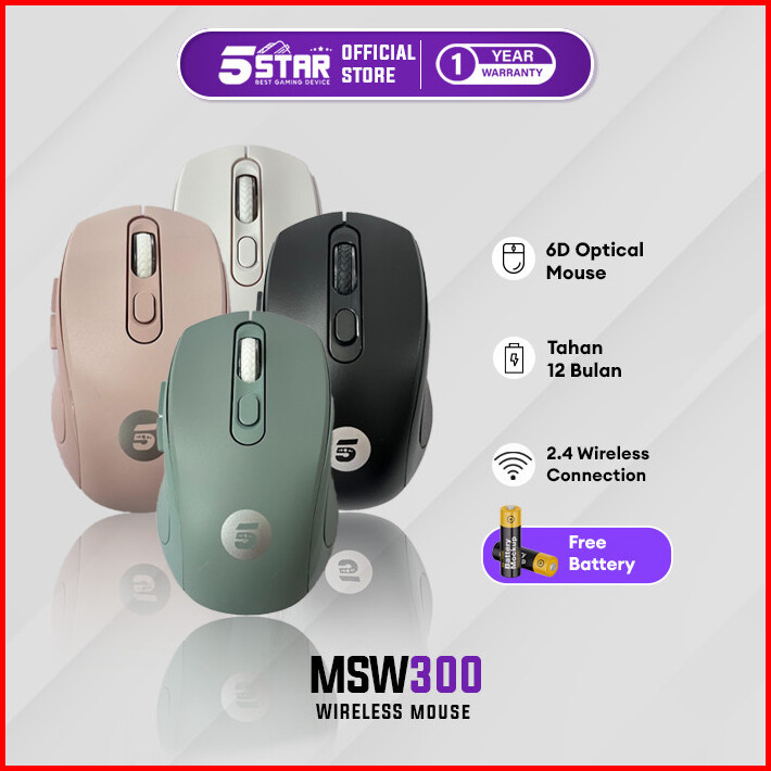 5star Gaming Msw300 Mouse Wireless 2.4ghz Silent Optical 1600dpi Dengan Receiver Usb