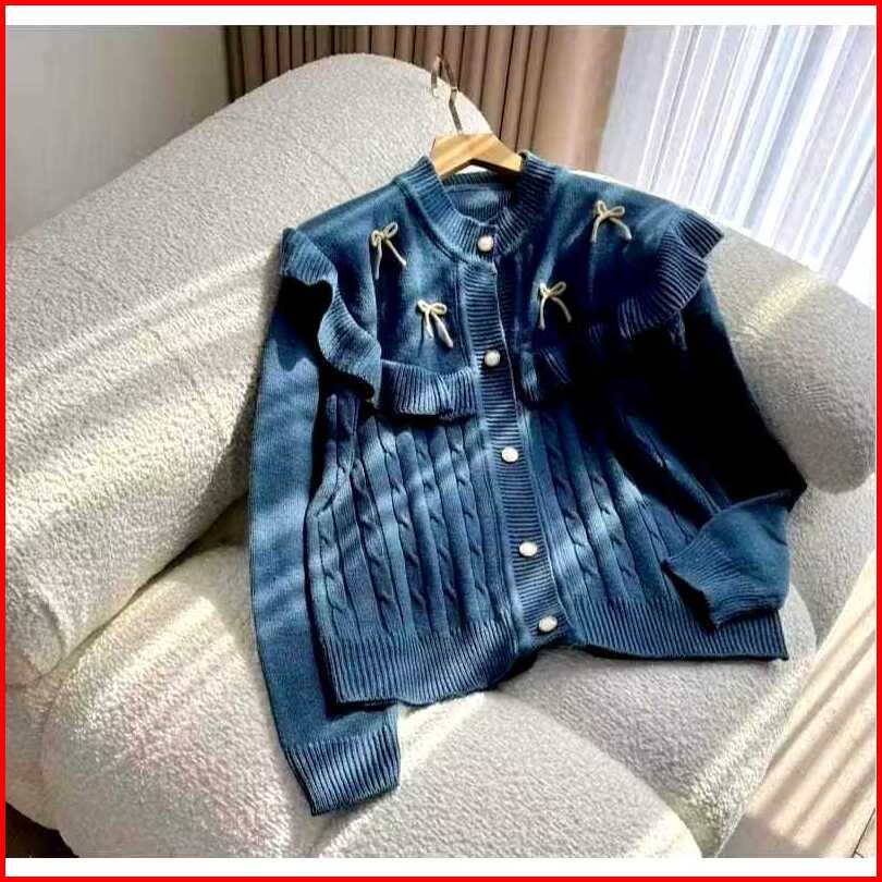 Cardy Darika Ruffle Atasan Cardigan Wanita Cardigan Cable Pita Cardy Kepang Korean Style