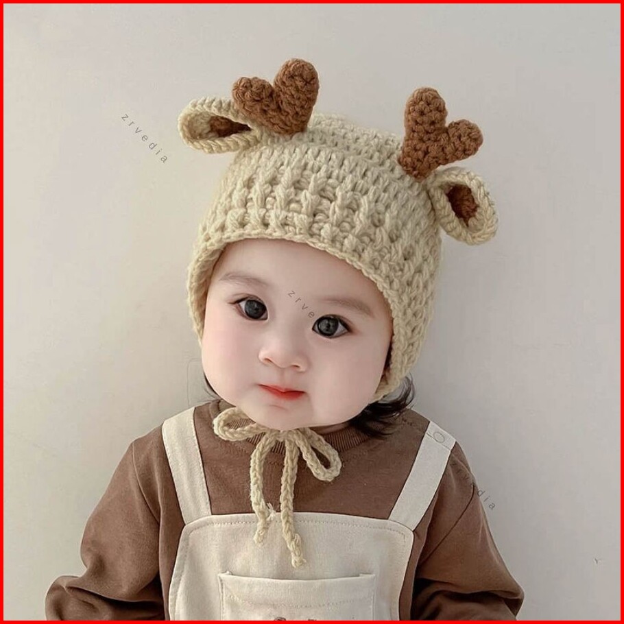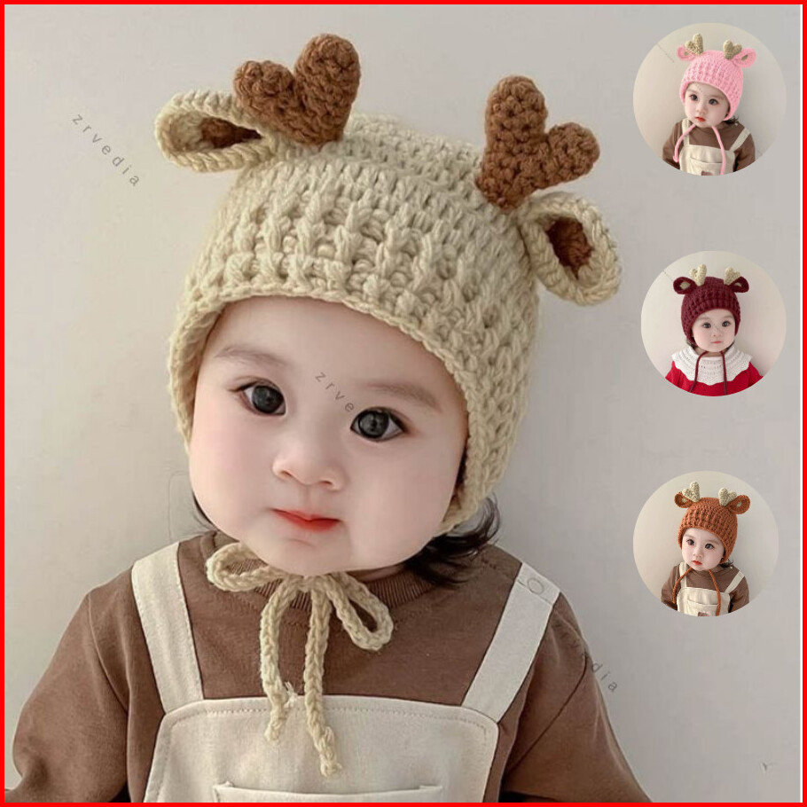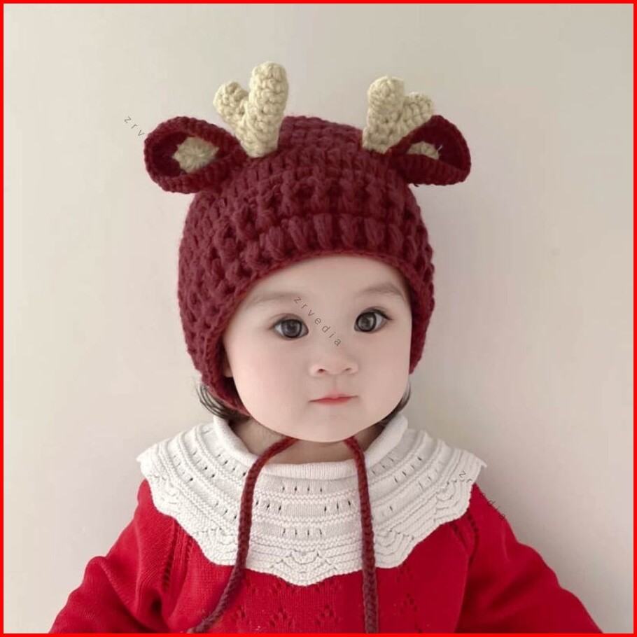 Kupluk Rajut Baby Rusa Kepang Bayi - 5 Tahun Topi Ala Korea Import Premium Newborn Anak Laki Perempuan Bayi 0 3 6 12 18