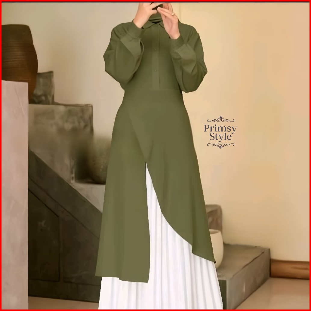 Tunik Muslimah Kombinasi Pleats Elegan Terbaru Atasan Wanita Hijab Modis Kekinian Untuk Kerja Kondangan Hangout