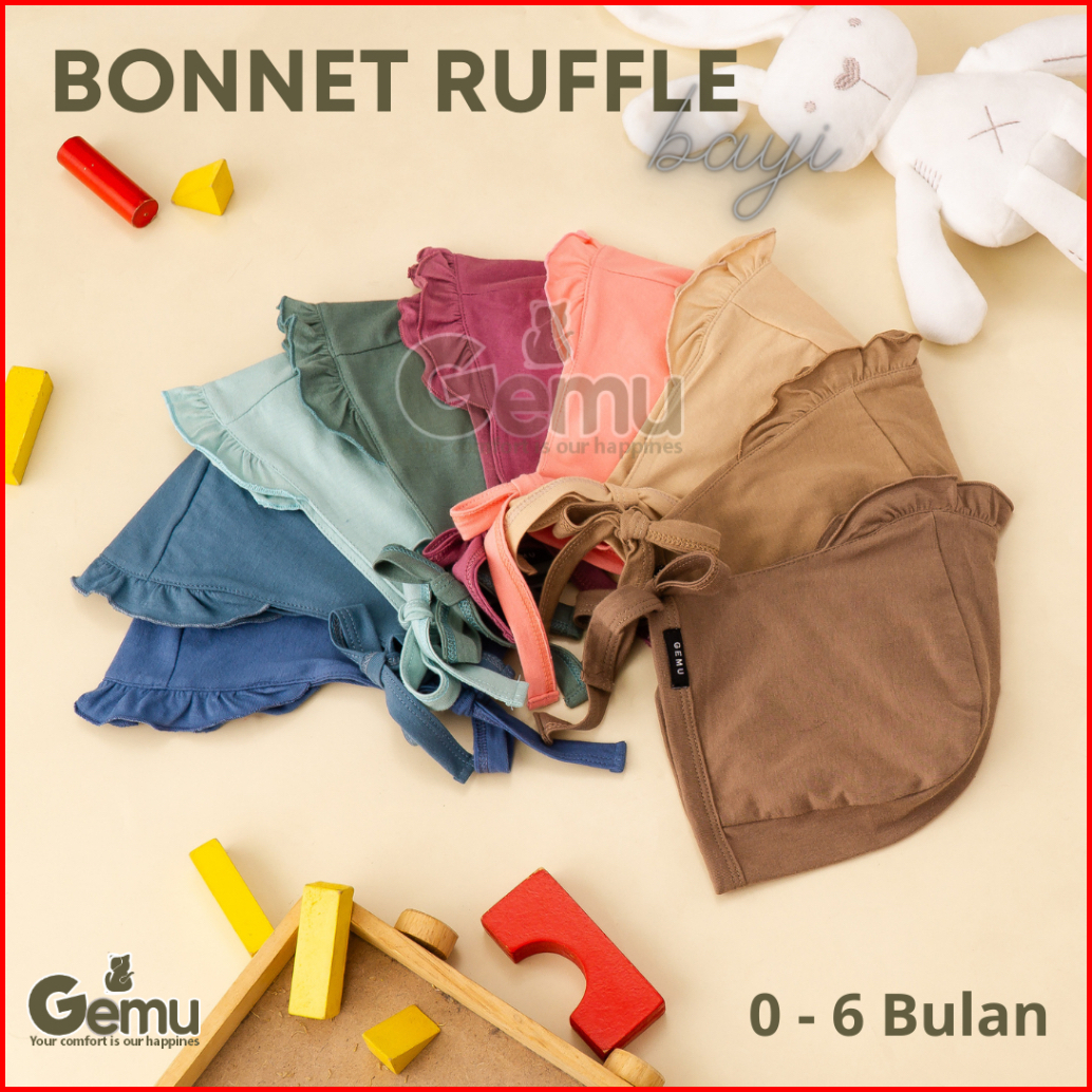 Gemu Bonnet Ruffle Kupluk Topi Bayi 0-6 Bulan