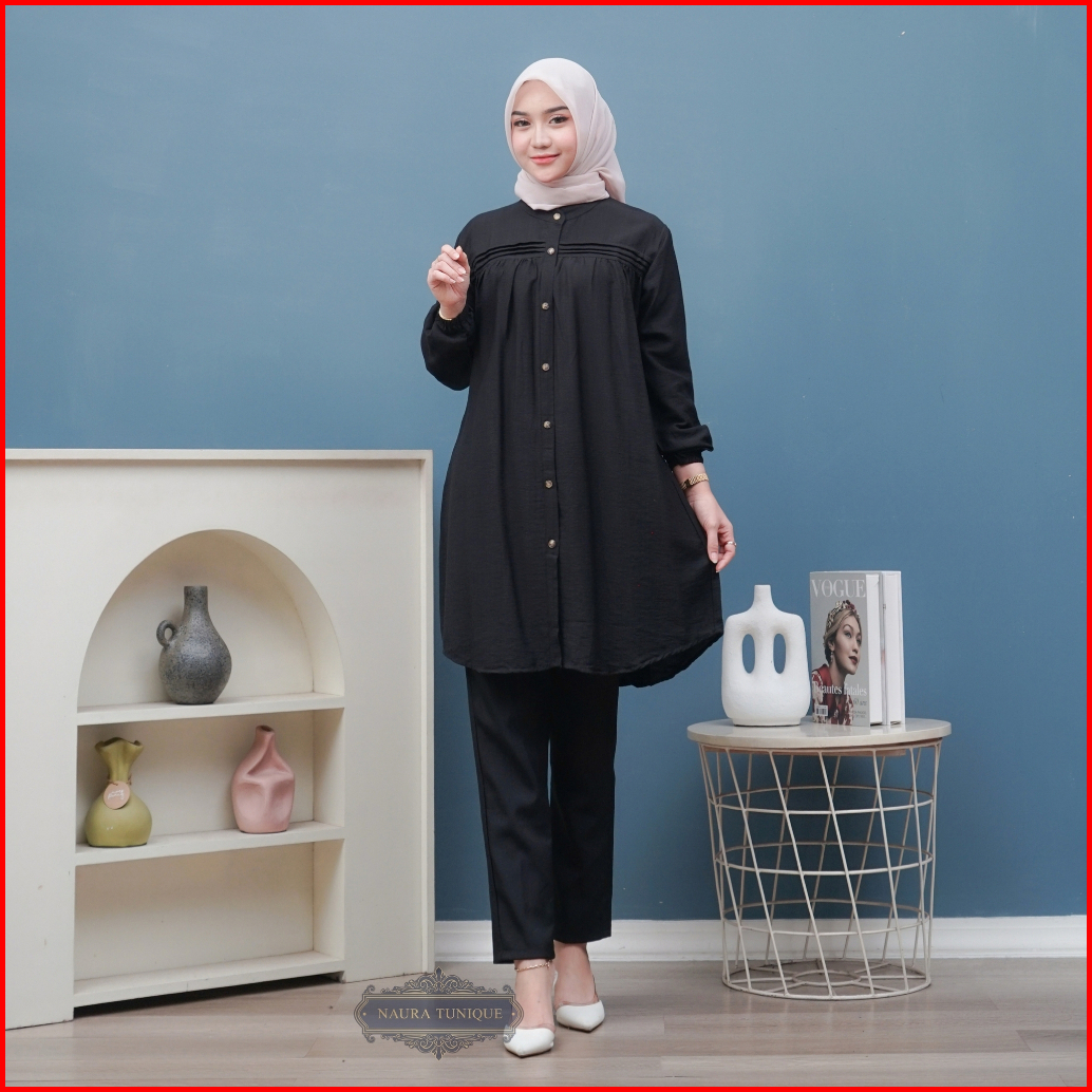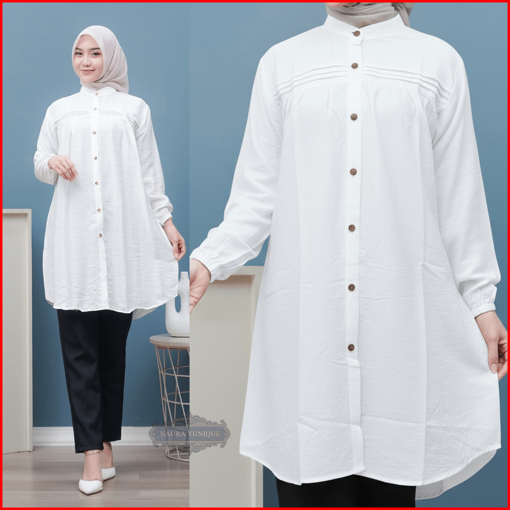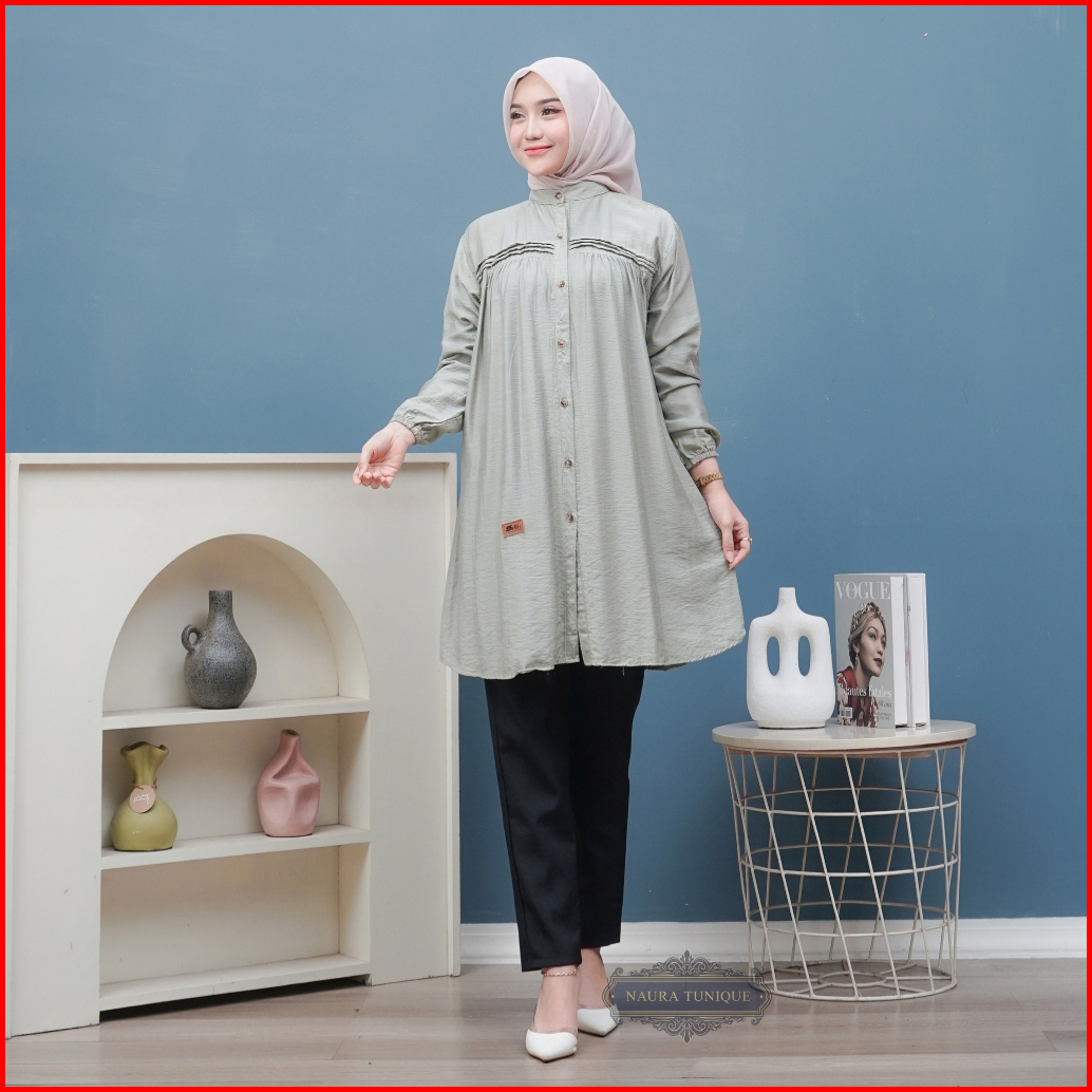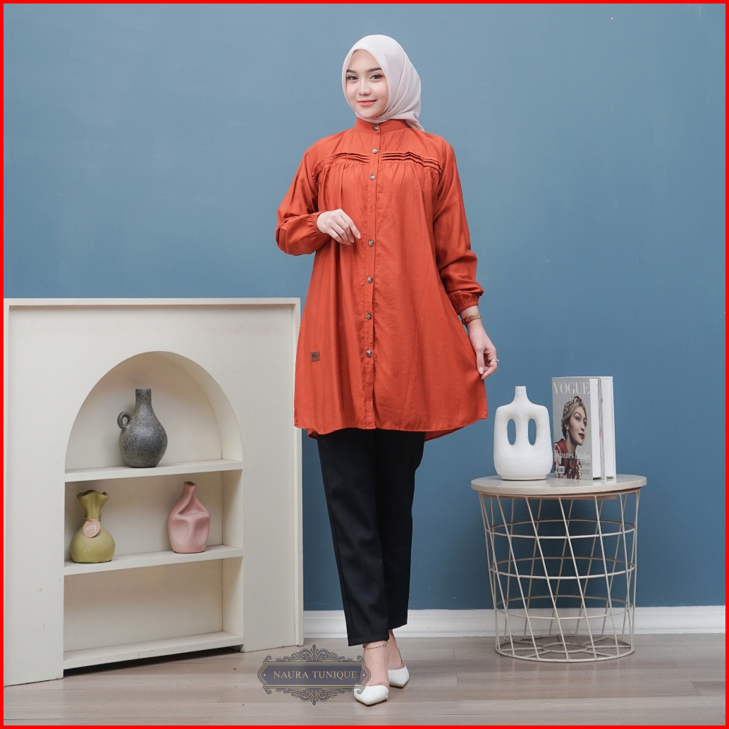 Jumbo Kaisa Tunik Polo Linen Kemeja Long Tunik Atasan Wanita Ld 110-130 By Naura Tunique