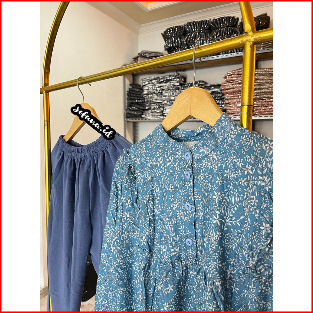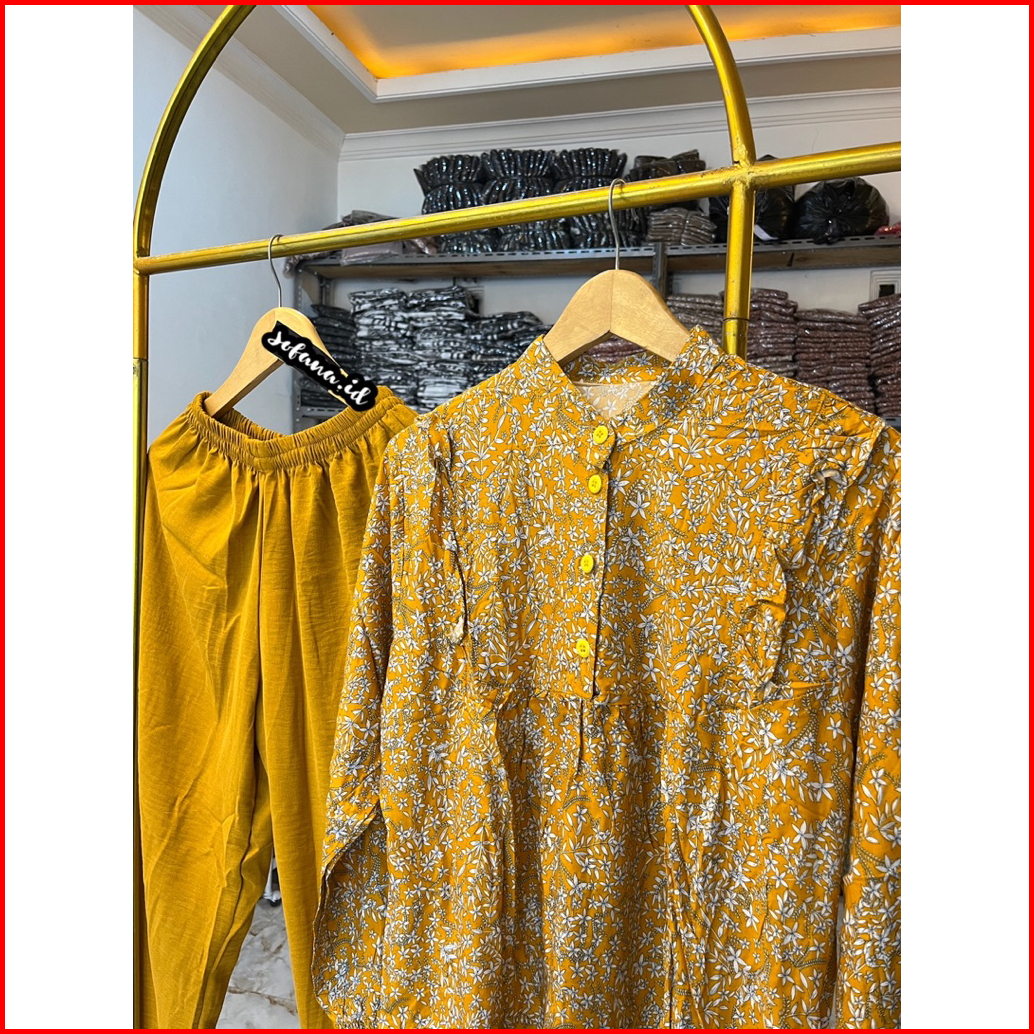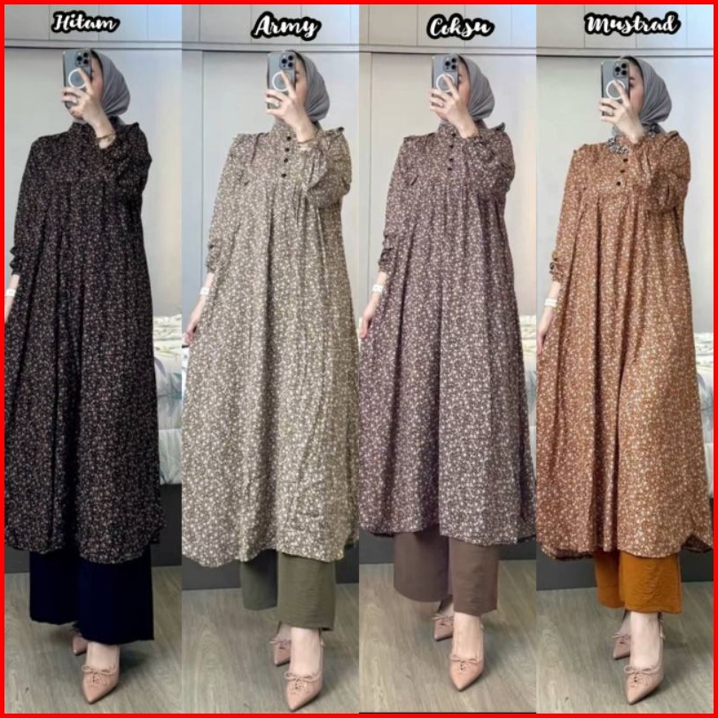 One Set Long Tunik Ayla Bunga Rayon Diamond Mix Crinkle Airflow Adem Terbaru