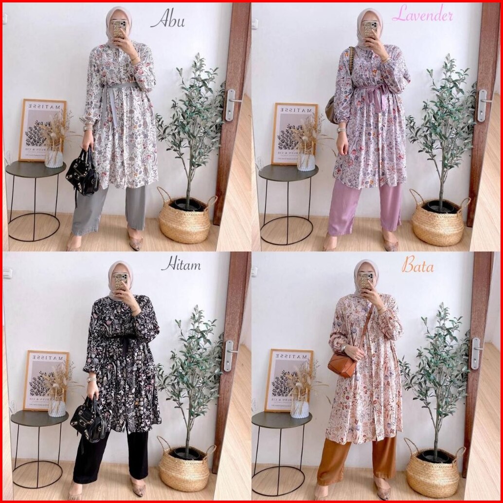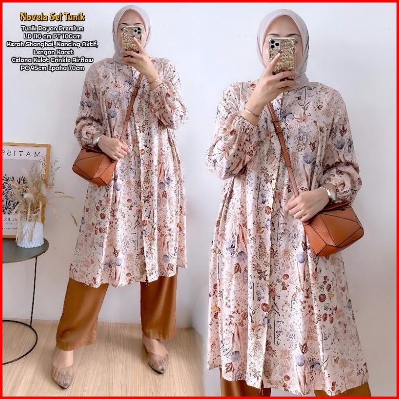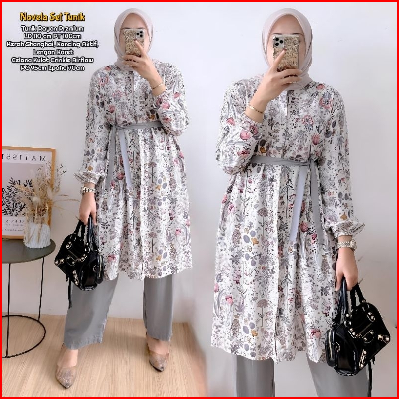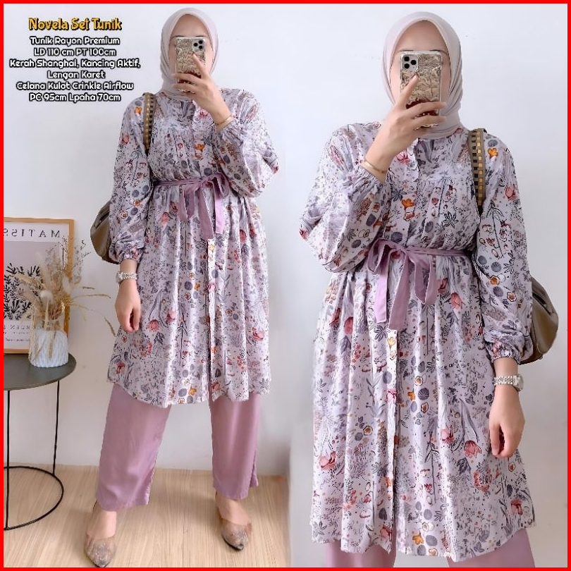 Novela Set Tunik - One Set Wanita Kekinian Rayon Premium Baju Setelan Wanita Celana Kulot Ld 110 Cm