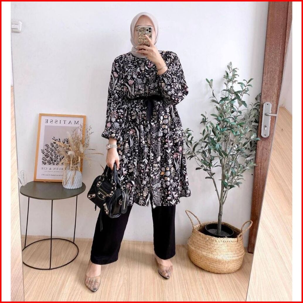 One Set Setelan Tunik Motif Lavetta Jumbo Terbaru Premium Kekinian Terlaris