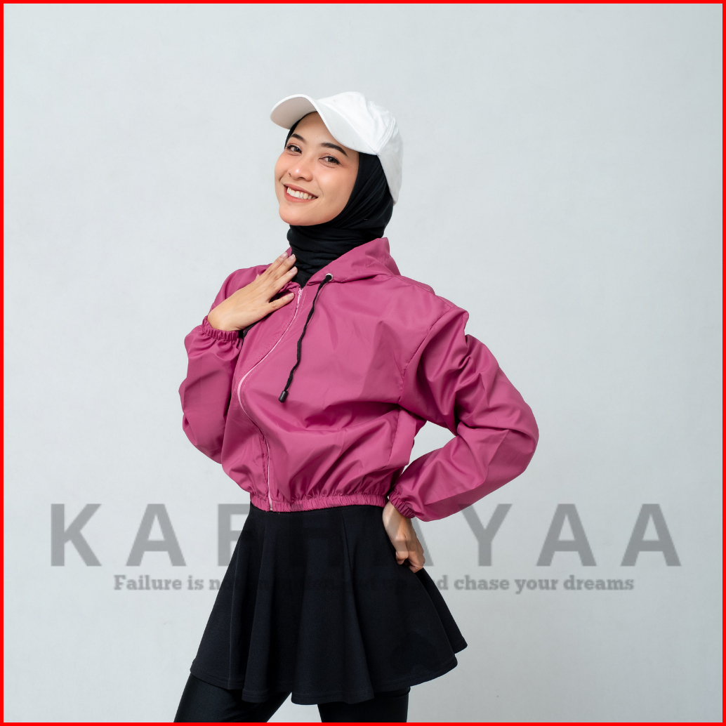 Kafhayaa - Jaket Wanita Olahraga Crop Top Parasut Polos Anti Air Cepat Kering Olahraga Jogging Sauna