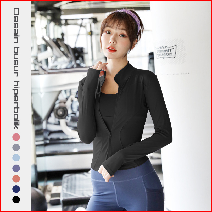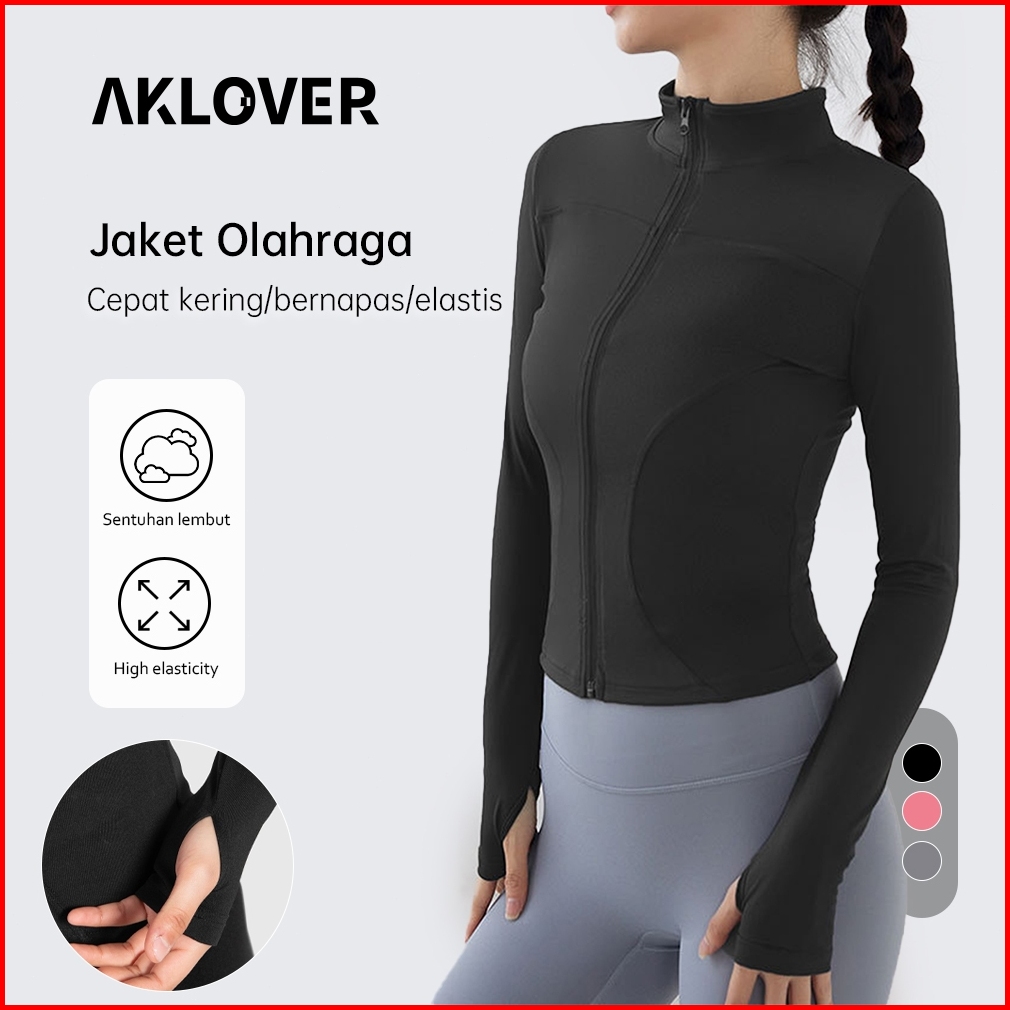 Aklover Jaket Olahraga Wanita Lengan Panjang Baju Lari Wanita Uvjaket Sport Untuk Yoga Fitness
