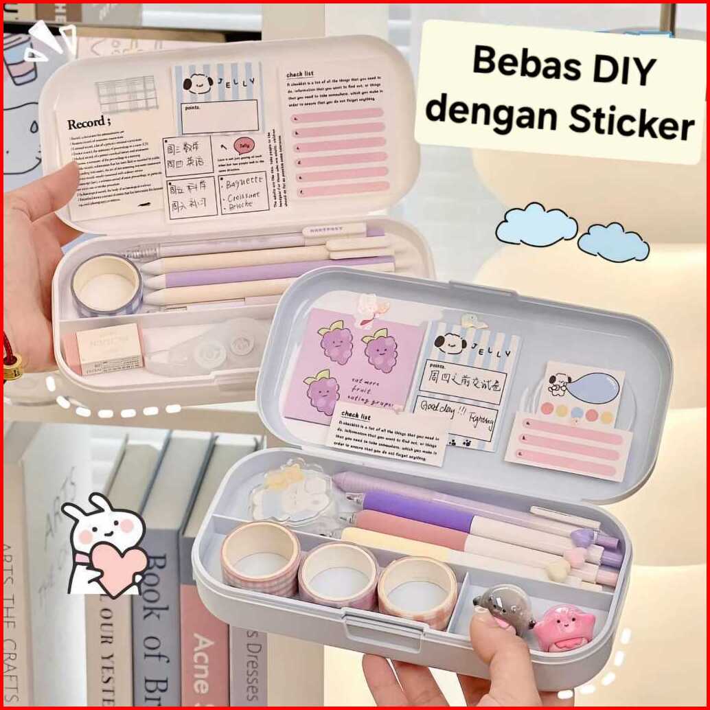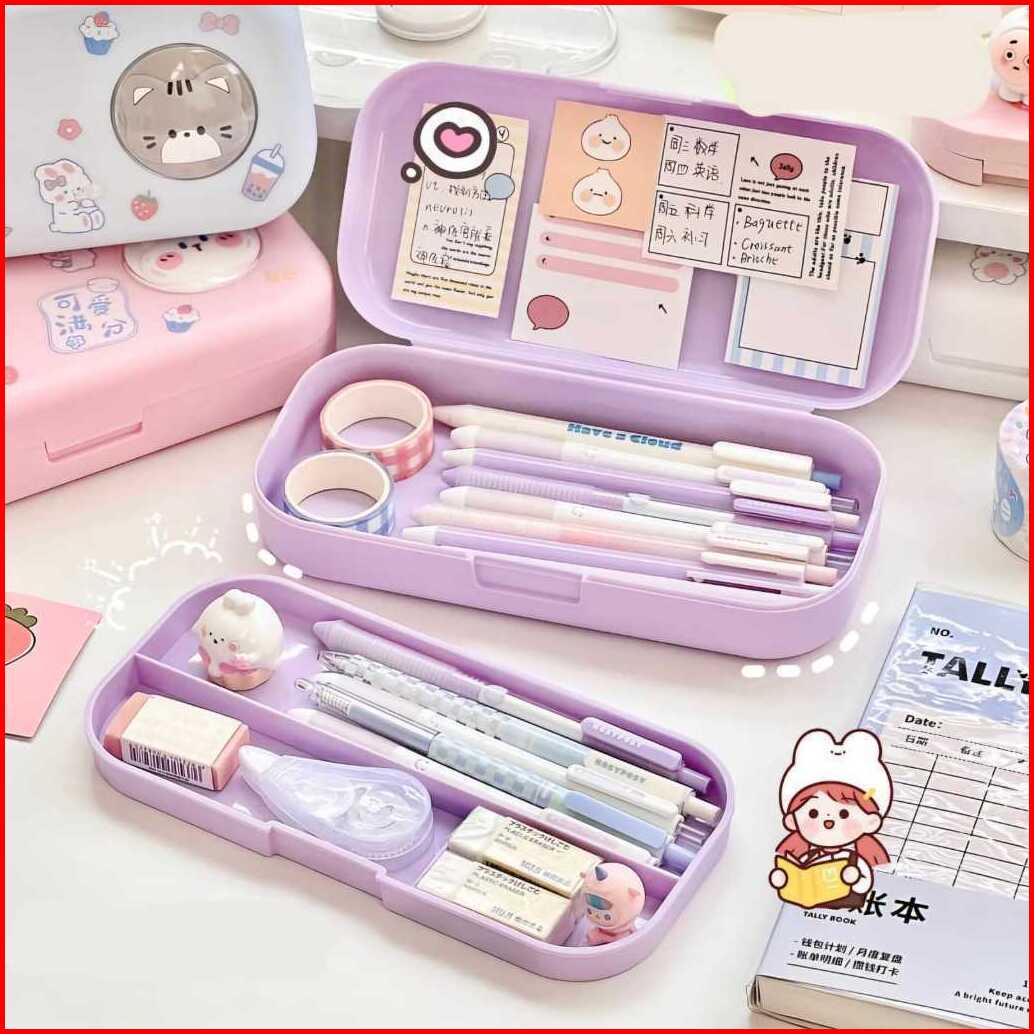 Kotak Pencil Estetik Pencil Case Pastel 2 Tingkat Cute Tempat Pencil Sekolah Atk