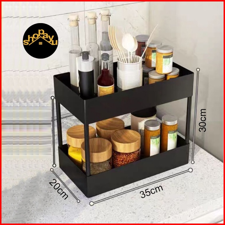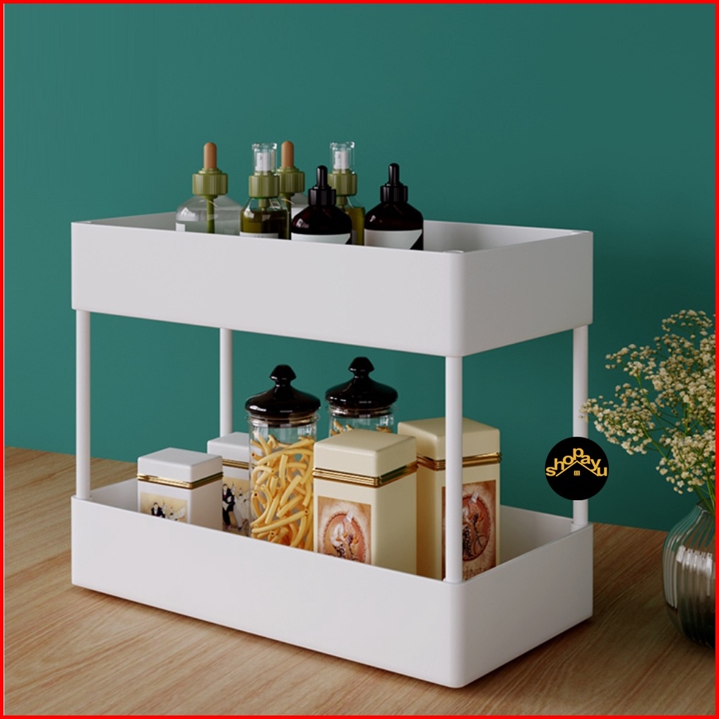 Rak Dapur Square Rak Kosmetik Rak Susun Serbaguna Rak Kamar Mandi Portable 2 Susun