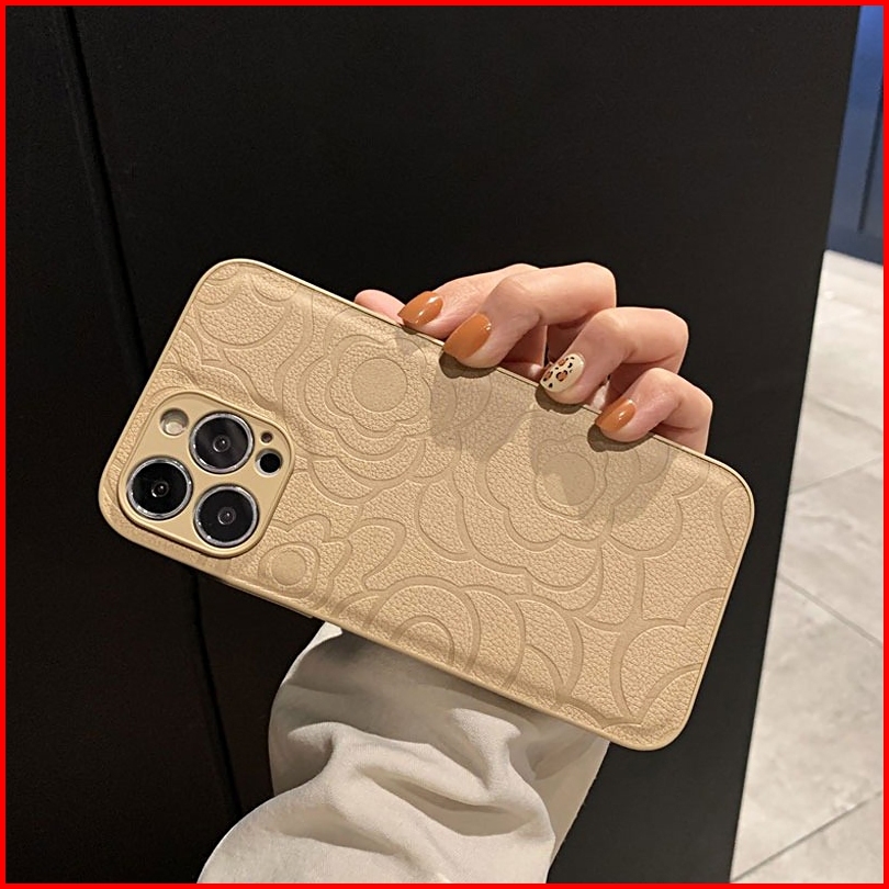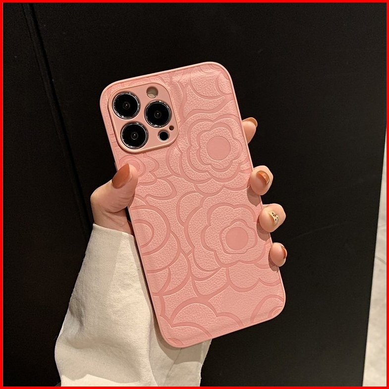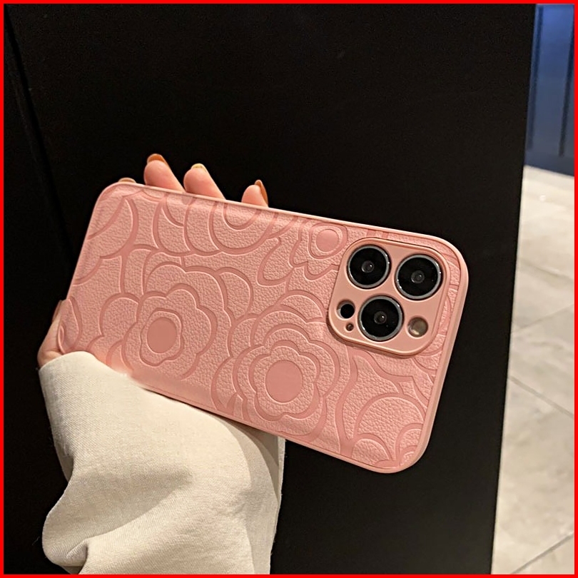 Fashion Embossed Camellia Leather Soft Silicone Shockproof Phone Case For Iphone 17 16 15 14 Pro Max Plus 13 12 11 Pro M