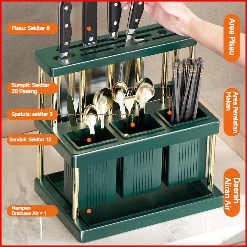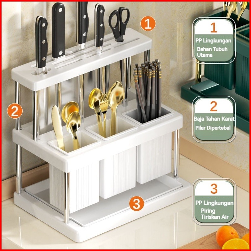 Codcutlery Holder Tempat Sendok Garpu Set Hole Knife Minimalis Dengan Peniris Serbaguna Rak Dapur Estetik