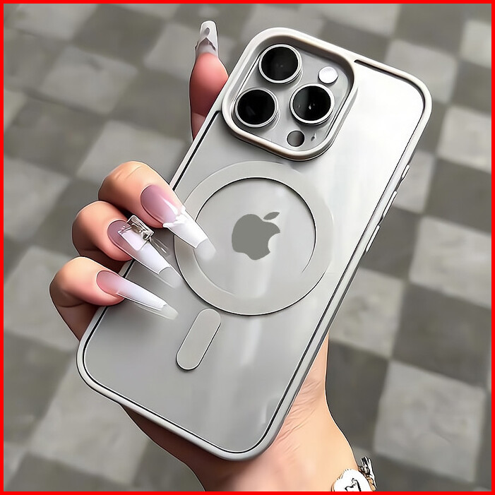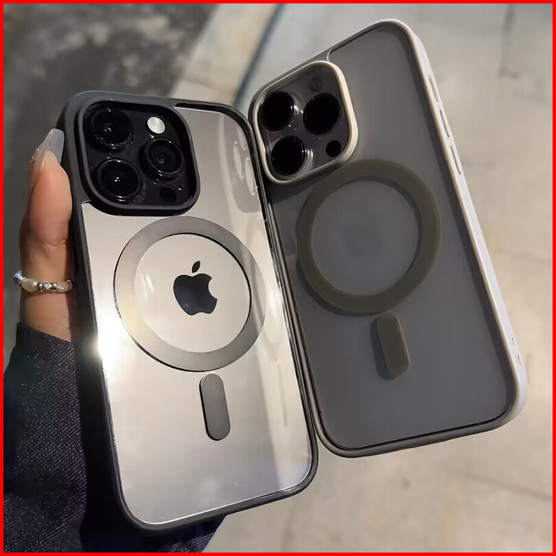 Premium Titanium Gray Case Iphone 11 12 13 14 15 Pro Max 14 15 Plus Acrylic Clear Magsafe Casing Iphone 15 14 13 12 11 P