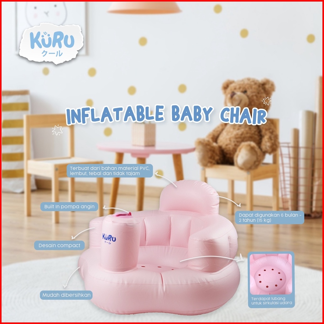 Kuru Bc01 Inflatable Baby Chair Kursi Sofa Angin Bayi Tiup Pompa Built In