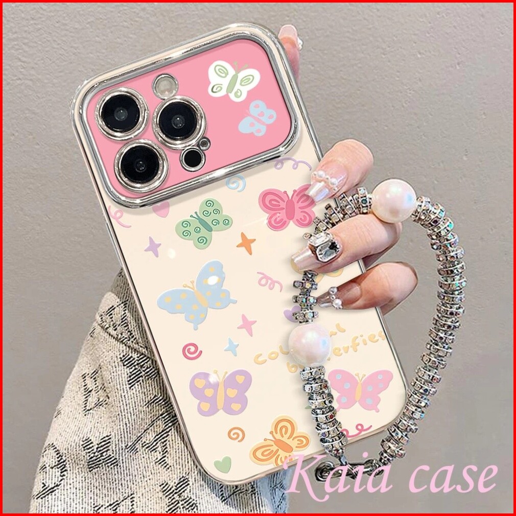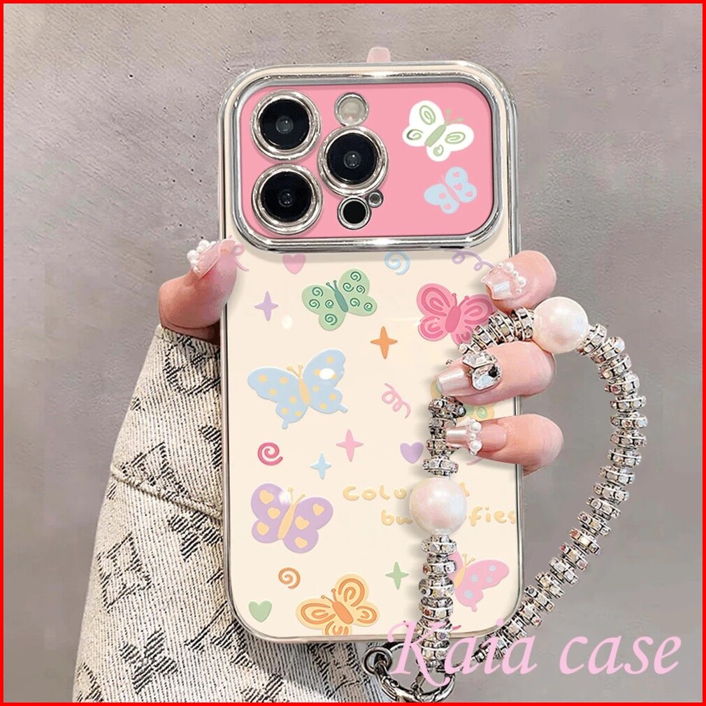 Case Iphone 16 Kupu-kupu Berwarna-warni Dengan Rantai Casing Ponsel Cocok Untuk Iphone 7plus Xs Xr 11 11pro 12 12pro 12p
