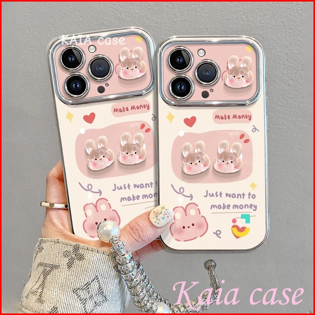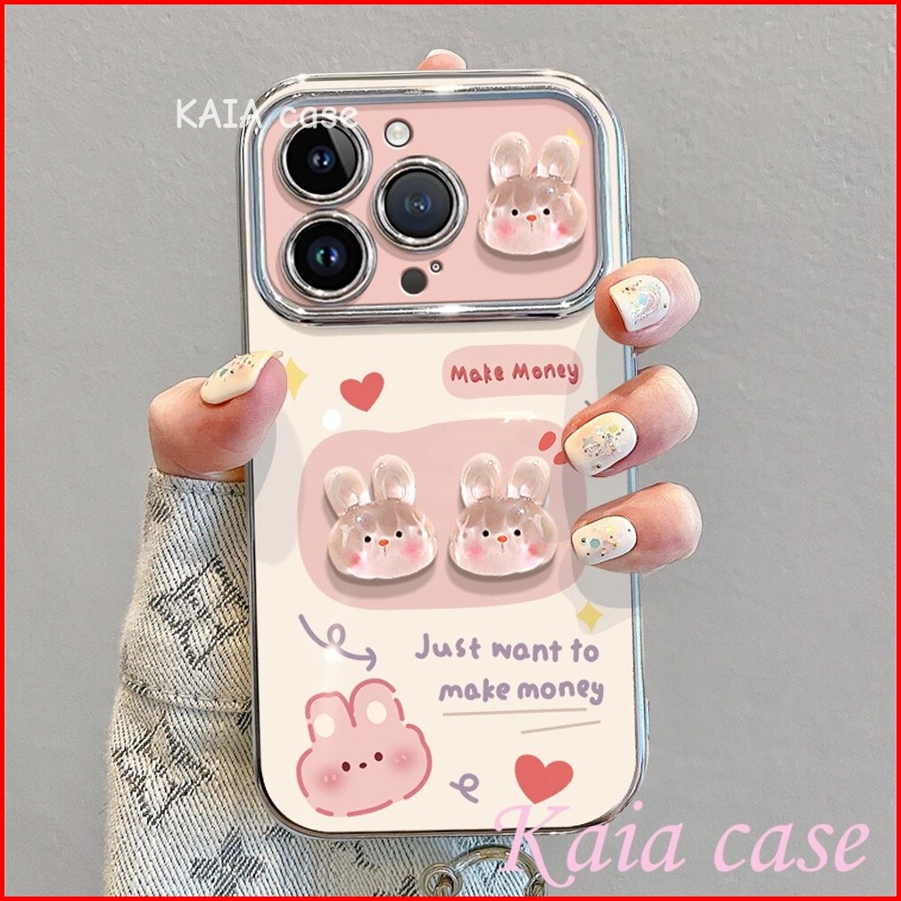 Case Iphone 11 Kelinci Berbentuk Hati Dengan Stiker Dan Rantai Casing Ponsel Cocok Untuk Iphone 7plus Xs Xr 11 11pro 12